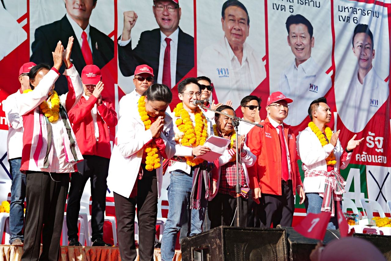 นายณัฐวุฒิ ใสยเกื้อ ผู้ช่วยหาเสียงพรรคเพื่อไทย ปราศรัยว่า ตนมาเมื่อ 3 ปีก่อนหาเสียง แต่ตอนนั้นคนไม่ได้มาเยอะเท่าตอนนี้ ผู้สมัครเขตนี้ได้เป็น สส. วันนี้เขายุบสภาฯ ตนก็มาเหมือนเดิม ใส่เสื้อสีเดิม หาเสียงให้พรรคเพื่อไทยเหมือนเดิม แต่ทำไมวันนี้ผู้สมัครจึงกลายเป็นผู้ชาย เพราะ 2 ปีก่อนไม่ใช่คนนี้ ตนถามชาวบ้านว่า สส.คนเก่าไปไหน พอเขาตอบตนจึงเข้าใจว่า สส.คนเก่าเขาได้จากเราไปแล้ว โดยที่พวกเราไม่ต้องยืนไว้อาลัย ไม่ต้องกรวดน้ำ ไม่ต้องใดๆ ทั้งสิ้น เพียงแค่ตกลงให้ตรงกันว่าวันที่ 8 กุมภาพันธ์ เข้าคูหากาเพื่อไทยทั้ง 2 ใบ