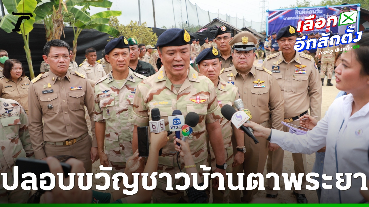 นายกฯ สวมชุด อส. บินด่วนสระแก้วซับน้ำตาชาวบ้านแนวชายแดนไทย-กัมพูชา พร้อมปลุกขวัญ ชรบ. หลังสมรภูมิสงบ