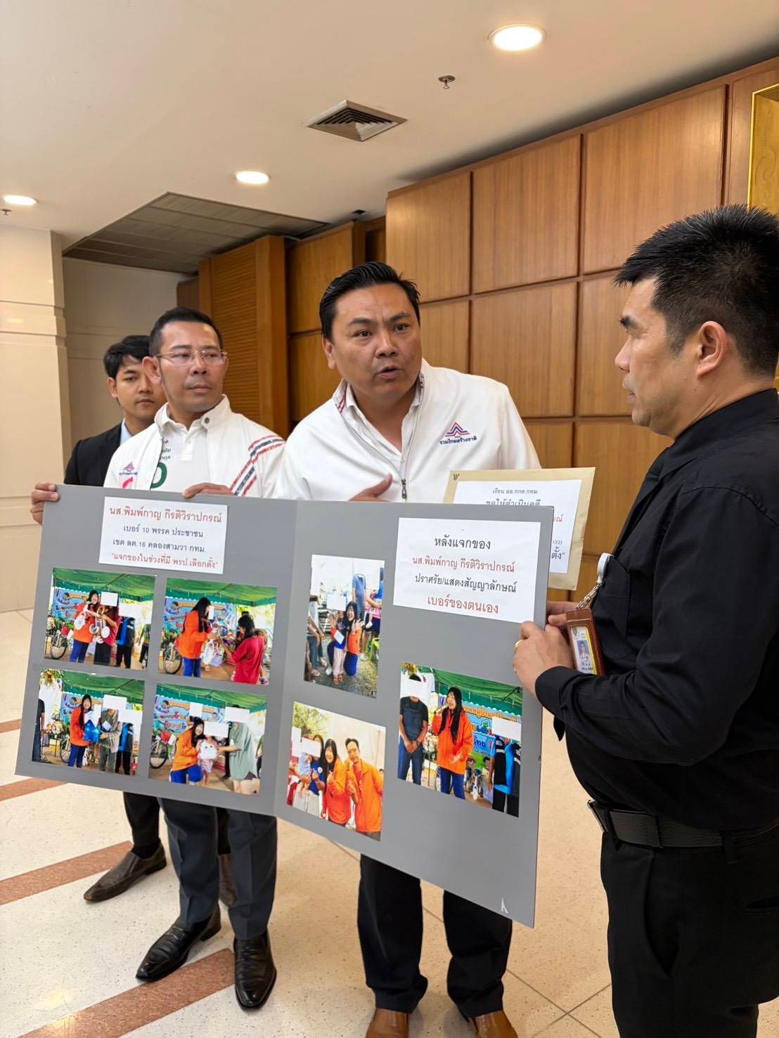 ด้วยการเข้าแจกรถจักรยานและสิ่งของที่มีมูลค่าให้กับประชาชนในงานวันเด็กแห่งชาติ ของชุมชนในหมู่บ้านแห่งหนึ่งในซอยคู้บอน 30 แขวงบางชัน เขตคลองสามวา กทม. พร้อมทั้งยังกล่าวปราศรัยกับผู้มาร่วมงาน และชูมือแสดงสัญลักษณ์หมายเลขประจำตัวผู้สมัคร ซึ่งเป็นการกระทำผิดกฎหมายตามมาตรา 73 (1) (2) ของ พ.ร.ป.ว่าด้วยการเลือกตั้ง สส. เป็นการจงใจฝ่าฝืนโดยไม่เกรงกลัวกฎหมายและคำเตือนตามบทบัญญัติของกฎหมายในห้วงที่มีการบังคับใช้