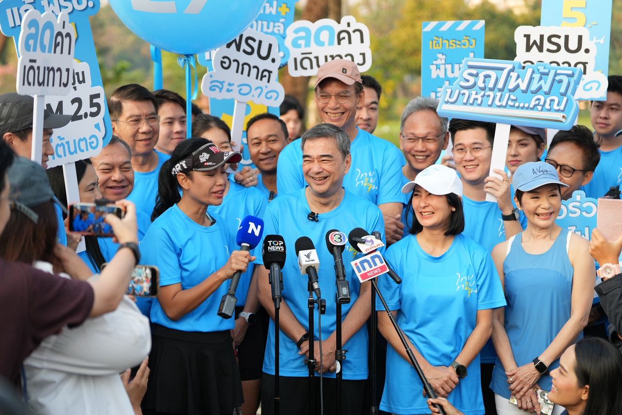 โดยนายอภิสิทธิ์ ให้สัมภาษณ์ว่า วันนี้ประชาธิปัตย์ถือฤกษ์ในฐานะที่เราใช้หมายเลข 27 ระบบบัญชีรายชื่อแสดงความพร้อมสำหรับการเลือกตั้งที่จะมีขึ้น เราเดินหน้าสู่เส้นชัยเต็มที่ เป็นกิจกรรมทั้งเดิน-วิ่งและการเดินทางด้วยระบบขนส่งมวลชนไปเพื่อเปิดนโยบายสำหรับพี่น้องชาวกรุงเทพฯ 2 เรื่อง คือ 1.พ.ร.บ.อากาศสะอาด ที่จะทำควบคู่กับกฎหมายอีก 2 ฉบับคือ พ.ร.บ.เศรษฐกิจหมุนเวียน และพ.ร.บ.การเปลี่ยนแปลงสภาพภูมิอากาศควบคู่ไปกับนโยบายที่จะสนับสนุนเรื่องสิ่งแวดล้อมครบวงจร เพราะเราไม่ควรจะต้องทนกับฝุ่น PM 2.5 ในระดับแบบที่เราเจออยู่ในขณะนี้ 2.คือลดค่าใช้จ่ายมีการเดินทางด้วยรถไฟฟ้า 5-30 บาท ซึ่งจะมีการเสนอรายละเอียดในช่วงเที่ยงของวันนี้ สำหรับชาวกรุงเทพฯ ช่วงโค้งสุดท้าย พรรคประชาธิปัตย์เดินหน้าเพื่อที่จะย้ำให้คนกรุงเทพฯเชื่อมั่นว่า เลือกประชาธิปัตย์เข้าไปมากๆแล้ว เราจะเป็นผู้คุมเกมให้กับท่านว่ารัฐบาลชุดต่อไป จะต้องเป็นรัฐบาลที่เอาจริงกับการปราบปรามทุจริตคอร์รัปชั่น ไม่มีเรื่องทุนเทา ไม่มีใครอยู่เบื้องหลัง เพราะการทำงานทุกอย่างต้องโปร่งใส คุมเกมไม่ให้มีใครไปใช้นโยบายสร้างความแตกแยก แต่ประเด็นละเอียดอ่อนทั้งหลายควรจะแสวงหาจุดร่วม และคุมเกมไม่ให้มีการเอานโยบายลดแลกแจกแถม ทำให้เศรษฐกิจไม่ยั่งยืน คุมเกมให้มียุทธศาสตร์การพัฒนาประเทศที่ยั่งยืน ทั้งหมดนี้ คือสิ่งที่เป็นความพร้อมของประชาธิปัตย์ ที่จัดกิจกรรมนี้ทั้งผู้สมัครของพรรคในกทม.และแคนดิเดตนายกฯ มาร่วมการแสดงความพร้อม