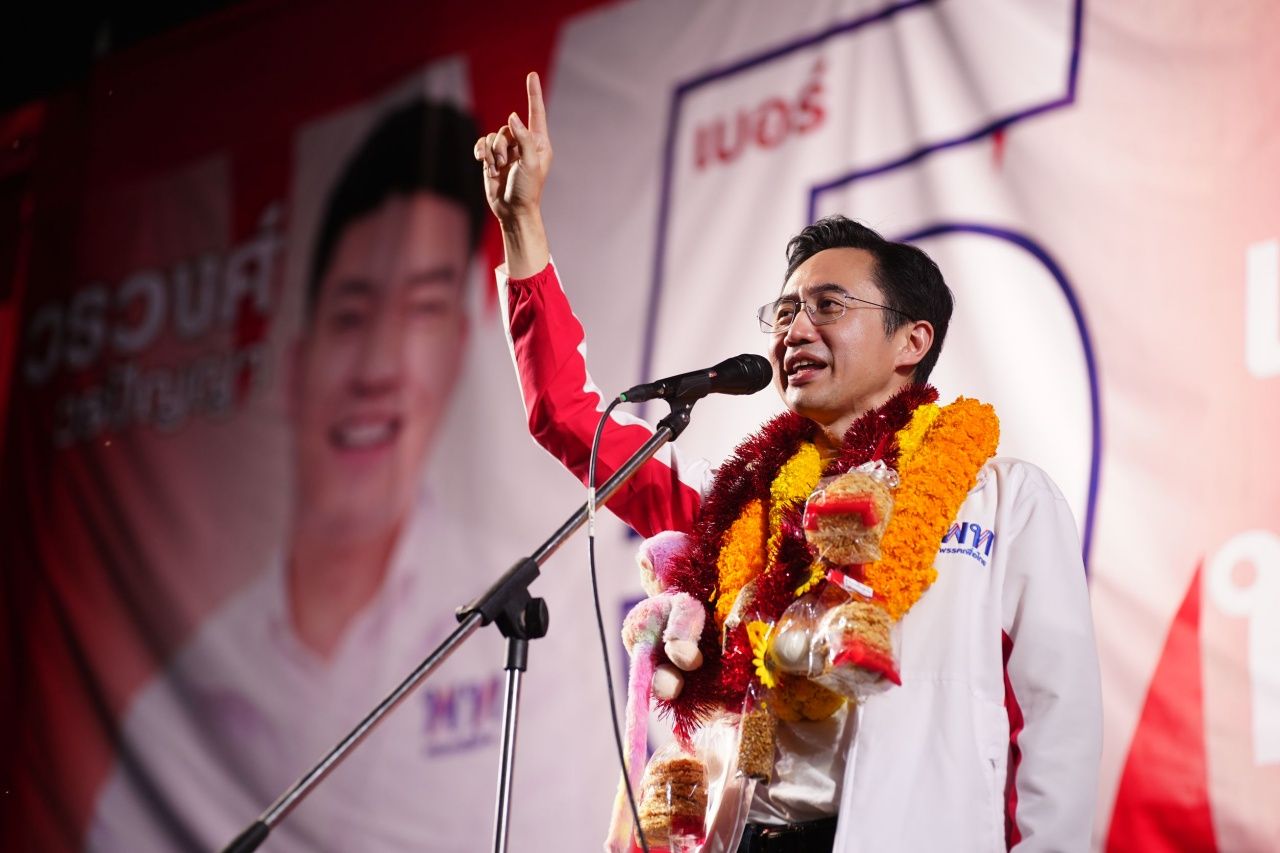 นายณัฐวุฒิ กล่าวต่อไปว่า พรรคเพื่อไทยไม่เคยขาดคะแนนจาก จ.ลพบุรี ตั้งแต่สมัยนายทักษิณ ชินวัตร อดีตนายกรัฐมนตรี แต่วันนี้พรรคเพื่อไทยลงสนามในสภาพที่บอบช้ำเพราะโดนปลดนายกฯ ไป 2 คน ตนจึงอยากจะเจรจากับคณะกรรมการการเลือกตั้ง (กกต.) ให้พรรคเพื่อไทยเสนอแคนดิเดตนายกฯ 5 คน เพราะกลัวไม่พอให้เขาปลด เพราะสมัยหนึ่งนายกฯ อยู่ได้เพียงแค่ 4 ปี ถ้าเสนอ 3 คน กลัวว่าจะไม่พอให้เขาปลด หากอยู่ปีสุดท้ายพรรคส้ม พรรคน้ำเงิน ไปยกมือทำอะไรแผลงๆ สัญญาได้หรือไม่ว่าจะเลือกไทย 100% เลือกเพื่อไทยทั้ง 2 ใบ แม้บางพรรคจะเตรียมกระสุนไว้เยอะ เป็นใบเทาๆ ที่เอามาแจกแล้วกวาดคะแนนลพบุรีไปให้หมด แต่ตนไม่กลัวกระสุน ไม่กลัวใบเทาๆ