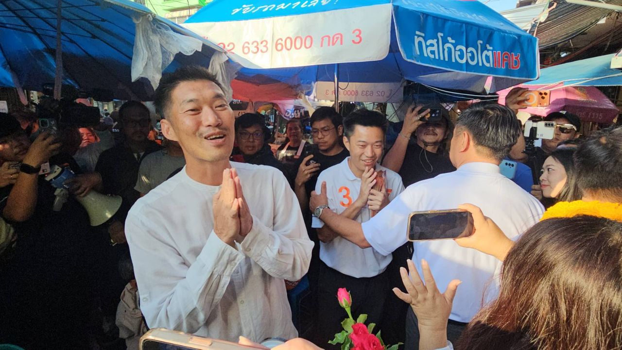 “อนุทิน-ธนาธร” จับมือทักทายกัน ระหว่างหาเสียงกลางตลาดเจ้าพรหมอยุธยา ก่อนแยกย้ายคนละทาง ขณะแม่ค้าบอกเลือกภูมิใจไทยอยู่แล้ว ด้านช่างนาฬิกาทัก “เสี่ยหนู” วาสนาดี ได้นั่งนายกฯ ต่อแน่