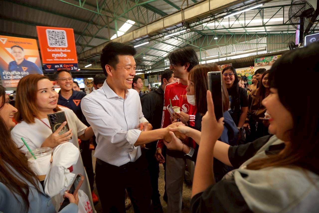 เมื่อเวลา 12.30 น. วันที่ 28 มกราคม 2569 ที่ตลาดรวมทรัพย์ อโศกมนตรี กทม. นายณัฐพงษ์ เรืองปัญญาวุฒิ หัวหน้าพรรคปชน. พร้อมด้วย นายภัณฑิล น่วมเจิม ผู้สมัคร สส.กทม. พรรคปชน. ลงพื้นที่หาเสียงบรรยากาศเป็นไปอย่างคึกคัก ทันทีที่เดินทางมาถึงมีประชาชนชาวออฟฟิศ และนักศึกษาแห่เข้ามาให้กำลังใจจำนวนมากพร้อมขอเซลฟี่ถ่ายรูปตลอดทาง นายณัฐพงษ์ กล่าวว่า วันนี้ได้รับการตอบรับที่ดีประชาชนส่วนใหญ่ในตลาดแห่งนี้มีทั้งที่อยู่ในเขตและนอกเขต จึงถือโอกาสมาขอคะแนนเสียงชาวกรุงเทพฯ ทุกคน เนื่องจากเป็นจุดเริ่มต้นในการปักธงส้มเลือกตั้งปี 66 ได้ถึง 32 เขต ครั้งนี้มั่นใจว่าจะได้เก้าอี้ สส.กทม. ครบทั้ง 33 เขต อย่างแน่นอน สส.บัญชีรายชื่อก็สำคัญครั้งที่แล้วชาว กทม. เลือกพรรคก้าวไกล 49% มาในครั้งนี้พรรคประชาชน ตั้งเป้าเพิ่ม 400,000 คะแนน ให้ถึง 60% เพื่อให้ได้เก้าอี้ สส.ปาร์ตี้ลิสต์ เพิ่มอีก 1 เขต