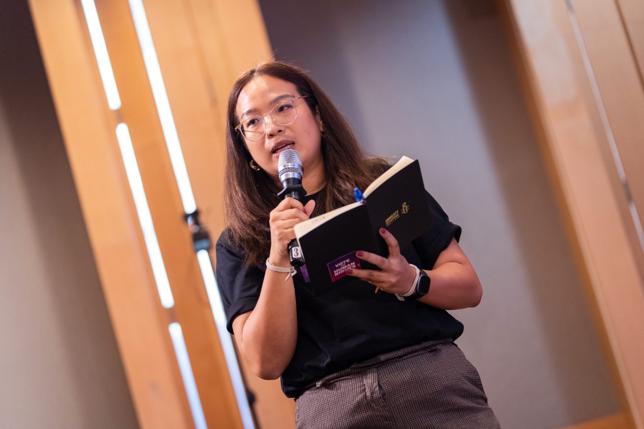 “สิทธิมนุษยชนเป็นเหมือนเรื่องธรรมดาหรือเรื่องตายตัว แต่สุดท้ายแล้วการพูดคุยบนเวทีนี้ใกล้ตัวทั้งหมดเลย เพราะสิทธิมนุษยชนคือเรื่องการเมือง ประวัติศาสตร์ และอนาคต นอกจากนี้ยังมีคนที่ไม่ได้อยู่ในพื้นที่นี้ เรายังคิดถึงไผ่-จตุภัทร์ บุญภัทรรักษา, เก็ท–โสภณ สุรฤทธิ์ธำรง และเพื่อนๆ ในเรือนจำที่ไม่สามารถมาพูดในเวทีนี้ได้ เราหวังว่า 4 ปีข้างหน้าจะมีการพัฒนาเรื่องสิทธิมนุษยชนมากขึ้น”