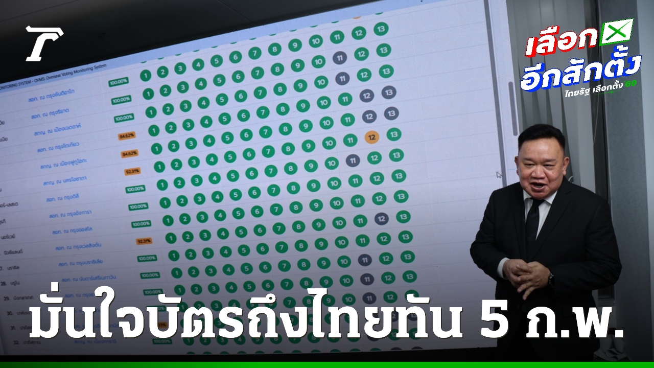 อธิบดีกรมการกงสุล เปิดศูนย์ติดตามการเลือกตั้งและออกเสียงประชามตินอกราชอาณาจักร เผย บัตรเลือกตั้งทยอยส่งกลับไทยเพื่อคัดแยก ก่อนส่งต่อหน่วยเลือกตั้งทั้ง 400 เขต มั่นใจส่งกลับมาทัน 5 ก.พ. แน่