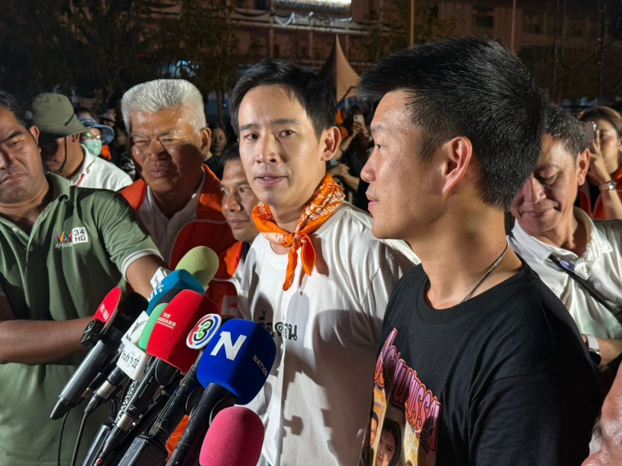 นายณัฐพงษ์ ให้สัมภาษณ์หลังการปราศรัยวันนี้ ว่า ค่อนข้างดีใจ ซึ่งนายพิธา กระซิบว่าผู้มาฟังการปราศรัยมากกว่าปี 2566 ผู้สื่อข่าวถามต่อว่านายพิธา มั่นใจในตัวนายกฯ เท้ง แค่ไหน นายพิธา ตอบว่า “ที่สุดครับ ที่สุดเท่าที่คนๆ หนึ่งเคยได้ร่วมงานกันมาจะมั่นใจในคนๆ หนึ่งได้” ที่ผ่านมานายณัฐพงษ์ อยู่กับตนมาตลอด หากตนได้เป็นนายกรัฐมนตรี นายณัฐพงษ์ก็คงได้เป็นรัฐมนตรีว่าการกระทรวงดิจิทัลเพื่อเศรษฐกิจและสังคม ไม่ก็เลขาธิการนายกรัฐมนตรี แต่ตอนนี้เป็นนายกฯ ตัวจริงแล้ว