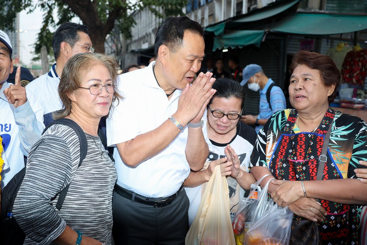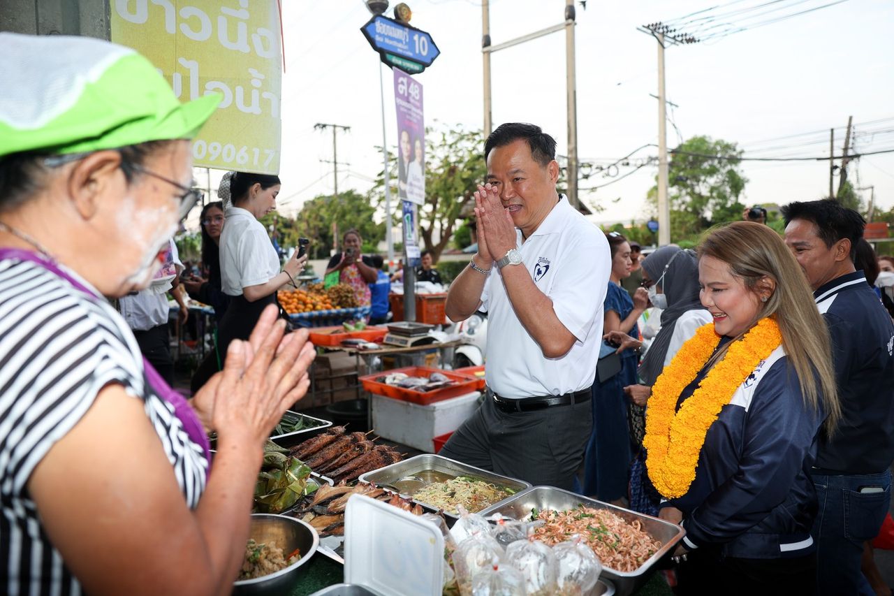 นายอนุทินได้เดินทักทายพ่อค้า แม่ค้าที่ขายของในตลาด และประชาชนที่มาจับจ่ายซื้อของ ตลอดทางบรรดาพ่อค้าแม่ค้าสอบถามถึงโครงการคนละครึ่งพลัส ซึ่งนายอนุทิน กล่าวว่า “100 เปอร์เซ็นต์” และมีแม่ค้าคนหนึ่งกล่าวกับนายอนุทินว่า “ดีใจมากที่ได้เจอท่าน” ก่อนกล่าวหยอกล้อนายอนุทินว่า “ลูกชอบท่านมาก อนุทิน ชินวัตร” ซึ่งทำให้นายอนุทินถึงกับหัวเราะก่อนตอบว่า “เป็นมงคลๆ” และยังมีแม่ค้าบอกนายอนุทินว่า “ใจให้ร้อย” นายอนุทิน กล่าวตอบว่า “ไม่เอาร้อย เอาเบอร์ 37” ช่วงหนึ่งมีผู้สูงอายุเข้ามาขอถ่ายรูปกับนายอนุทิน พร้อมขอให้เพิ่มเงินผู้สูงอายุเป็น 1,000-2,000 บาท เพราะ 600 บาท มันน้อยไป ถ้าได้จะเลือกเลย นายอนุทิน จึงหันมาตอบว่า “ได้ แต่ต้องดูที่งบประมาณ” จากนั้นนายอนุทิน ได้เดินไปขึ้นคร่อมจักรยานที่มีป้ายหาเสียงเป็นรูปนายอนุทิน พร้อมหมายเลข 37 โดยมีน.ส.กัญญาพร ผู้สมัคร สส.นั่งซ้อนท้าย ก่อนปั่นจักรยานในบริเวณดังกล่าว