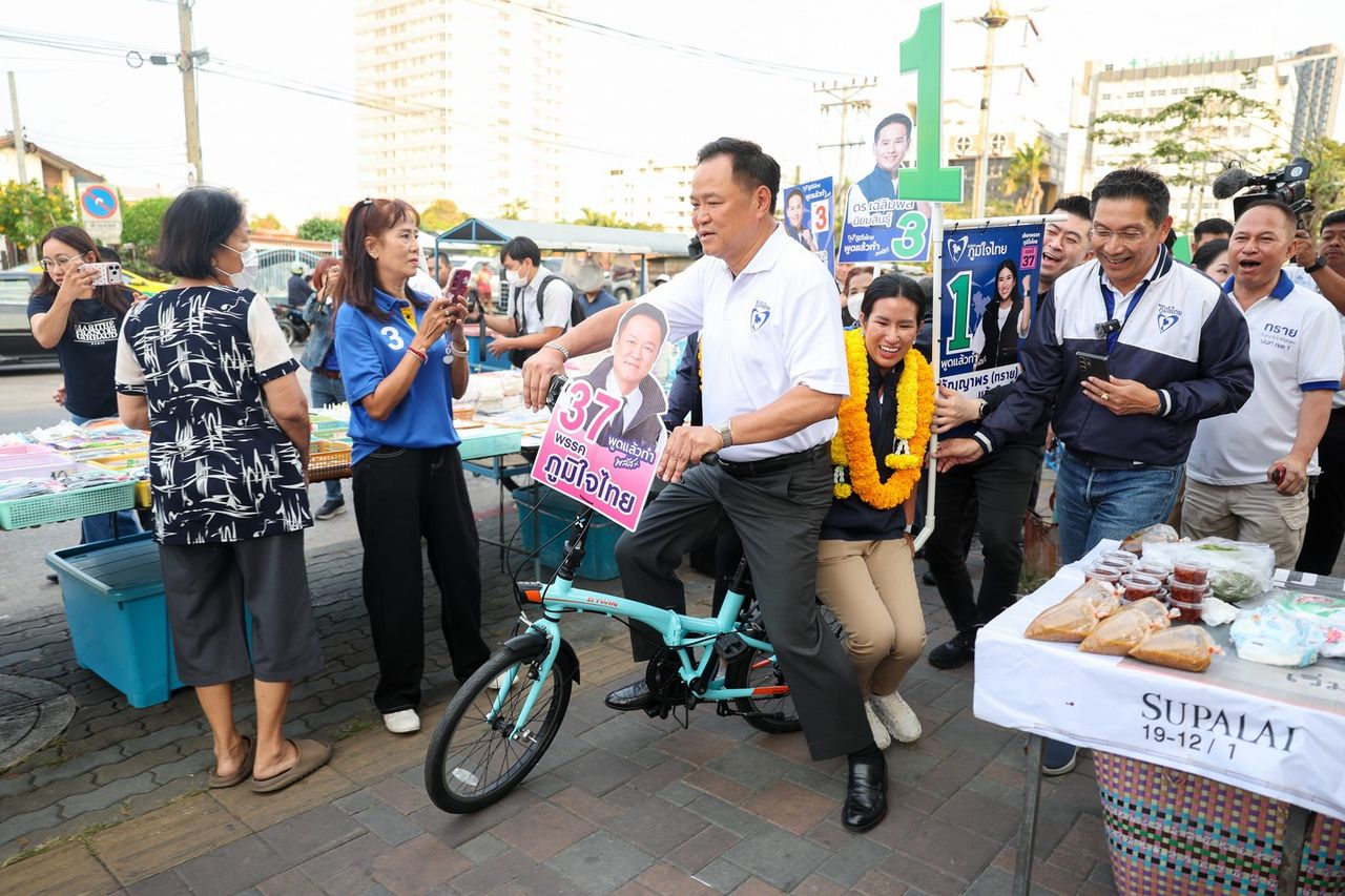 “อนุทิน” ลุยตลาดเช้าพระนั่งเกล้า ปั่นจักรยานหาเสียง แม่ค้าถามถึงคนละครึ่งตลอดทาง บอกใช้ผลงานแลกคะแนนเสียง เมิน “มาร์ค” เตือน กทม. กาน้ำเงินได้ส้ม มั่นใจไม่มีเหตุชายแดน 8 ก.พ. ได้เลือกตั้ง