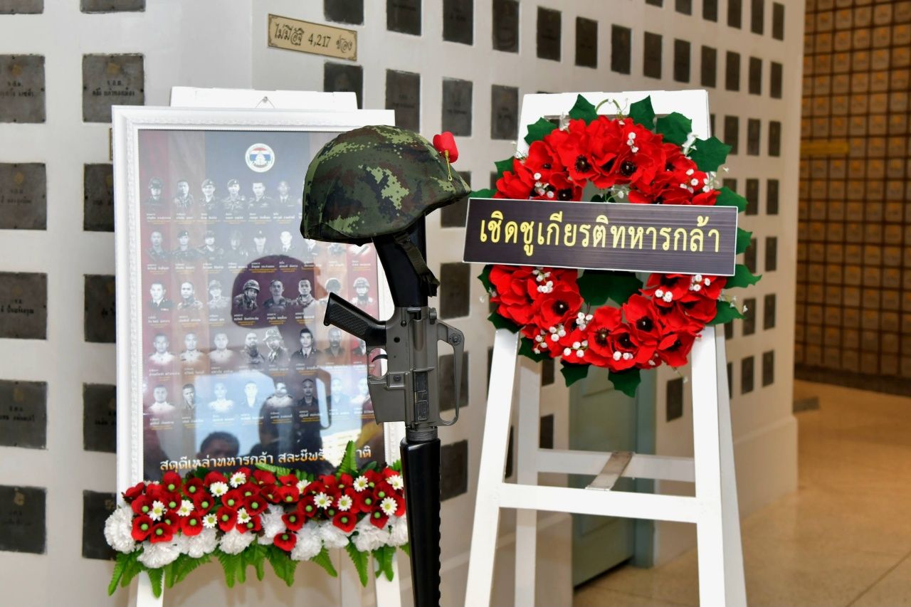 นายกรัฐมนตรีเป็นประธานพิธีบรรจุอัฐิทหารกล้า 42 นาย เสียชีวิตจากการปฏิบัติหน้าที่พิทักษ์ชายแดนไทย-กัมพูชา ที่อนุสาวรีย์ชัยสมรภูมิ น้อมสดุดีดวงวิญญาณทหารผ่านศึกผู้สละชีพเพื่อชาติ