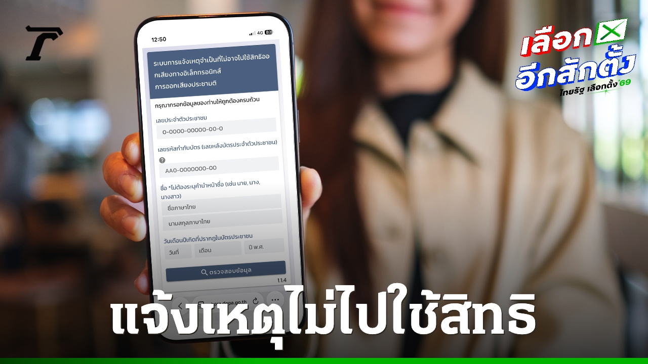 เลือกตั้ง 2569 : กกต. ชี้แจงขั้นตอน-กรอบเวลา-ช่องทาง แจ้งเหตุ “ไม่ไปใช้สิทธิเลือกตั้ง สส.” ก่อน-หลังเลือกตั้ง 7 วัน ย้ำ “ไม่ไปออกเสียงประชามติ” ต้องแจ้งเหตุจำเป็นด้วย ทำได้ถึง 15 ก.พ.นี้