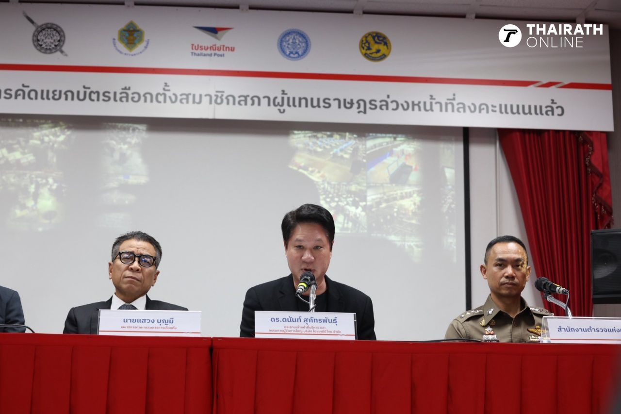 เมื่อเวลา 14.00 น. วันที่ 3 กุมภาพันธ์ 2569 ที่ศูนย์ไปรษณีย์บัตรหลักสี่ สำนักงานคณะกรรมการการเลือกตั้ง (กกต.) ร่วมกับบริษัท ไปรษณีย์ไทย จำกัด กรมการกงสุล กระทรวงการต่างประเทศ และสำนักงานตำรวจแห่งชาติ (ตร.) แถลงเปิดศูนย์ปฏิบัติการการคัดแยกบัตรเลือกตั้งล่วงหน้าที่ลงคะแนนแล้วจากต่างประเทศและในประเทศ เพื่อส่งมอบไปยังทั้งเขตเลือกตั้งปลายทาง 400 เขตทั่วประเทศ เดินหน้าภารกิจเลือกตั้งสมาชิกสภาผู้แทนราษฎร (สส.) และการออกเสียงประชามติ ประจำปี พ.ศ. 2569 ภายใต้มาตรการรักษาความปลอดภัยและการตรวจสอบที่เข้มงวดทุกขั้นตอน เพื่อให้กระบวนการเลือกตั้งเป็นไปด้วยความเรียบร้อย โปร่งใส โดยมี นายณรงค์ กลั่นวารินทร์ ประธานกรรมการการเลือกตั้ง และนายอนันต์ สุวรรณรัตน์ กกต. ร่วมสังเกตการณ์