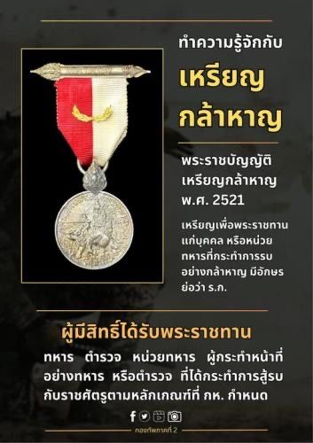กองทัพบก เตรียมเสนอขอพระราชทาน “เหรียญกล้าหาญ” แก่กำลังพลที่ปฏิบัติราชการสนามชายแดนไทย-กัมพูชา ผู้กระทำการสู้รบอย่างกล้าหาญอย่างยิ่งยวด เพื่อพิทักษ์อธิปไตยไทย