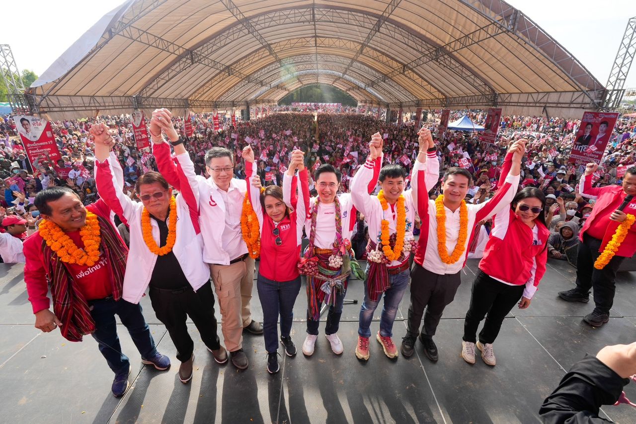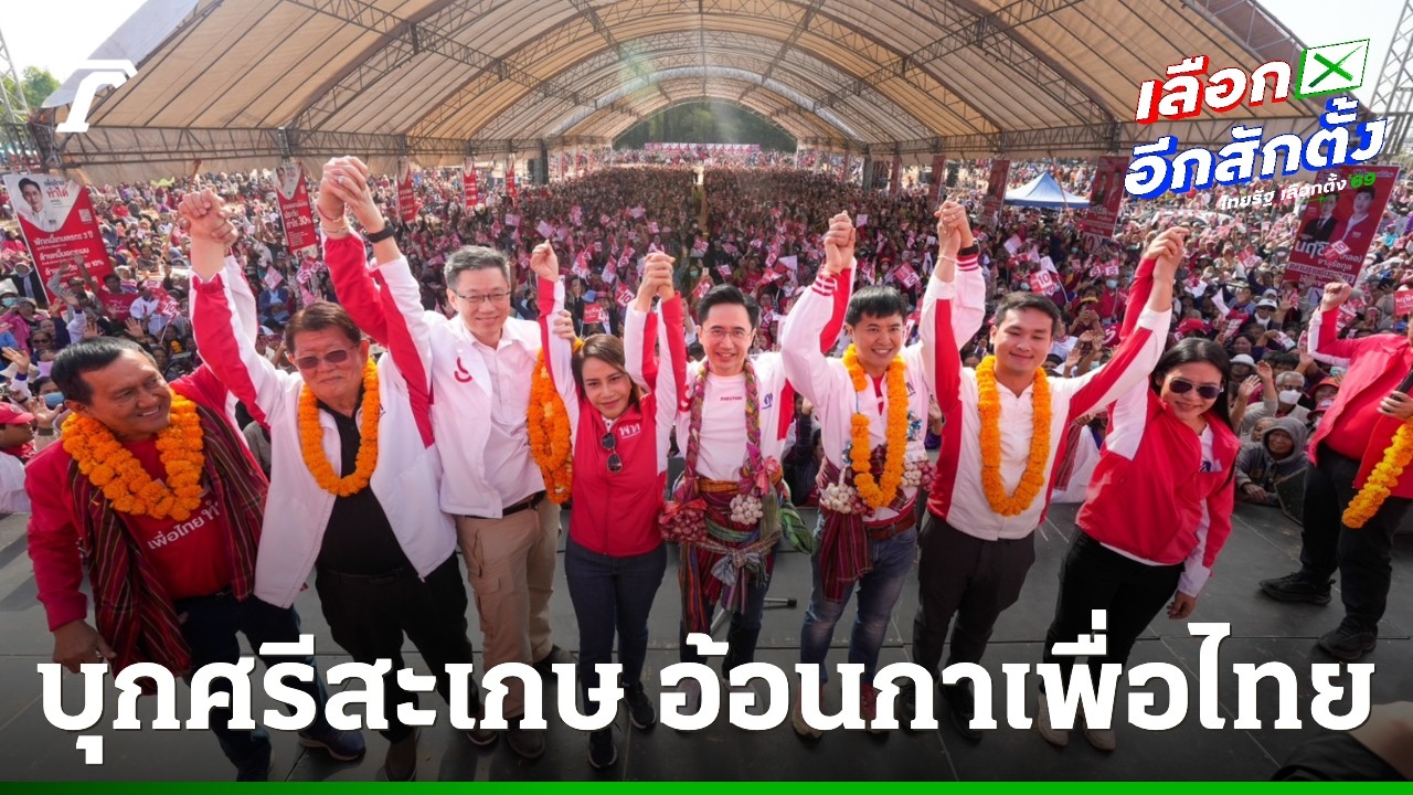 “ยศชนัน” ลุยศรีสะเกษ อ้อนชาวราษีไศล เลือกเพื่อไทยยกจังหวัด 9 เขต ด้าน “ณัฐวุฒิ” ปราศรัยดุ ขอเสิร์ฟเมนูงูเห่าผัดเผ็ด เย้ย สส. คนเก่าชอบหอมแดง อยู่ดีๆ เลื้อยไปหอมน้ำเงิน สุดท้ายก็โดนเท