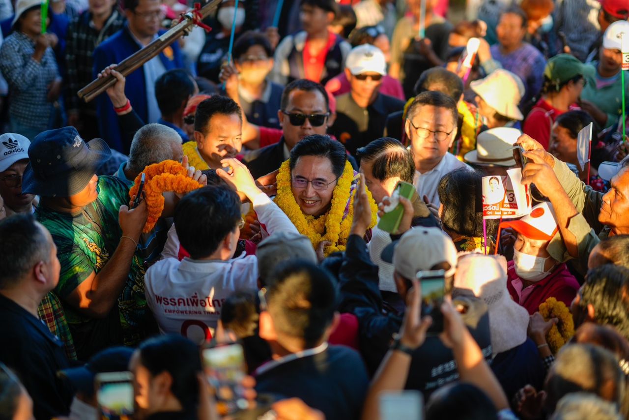 เวลา 15.50 น. วันที่ 4 ก.พ. 2569 ที่โรงเรียนท่าตูมประชาเสริมวิทย์ อ.ท่าตูม จ.สุรินทร์ นายยศชนัน วงศ์สวัสดิ์ แคนดิเดตนายกรัฐมนตรีพรรคเพื่อไทย พร้อมแกนนำพรรค พบปะประชาชนและขึ้นกล่าวบนเวทีปราศรัยช่วย นายชูชัย มุ่งเจริญพร ผู้สมัคร สส.จังหวัดสุรินทร์ เขต 2 เบอร์ 5, นายคุณากร ปรีชาชนะชัย ผู้สมัคร สส.จังหวัดสุรินทร์ เขต 3 เบอร์ 7, นายพรเทพ พูนศรีธนากูล ผู้สมัคร สส.จังหวัดสุรินทร์ เขต 4 เบอร์ 1 และนายครูมานิตย์ สังข์พุ่ม ผู้สมัคร สส.จังหวัดสุรินทร์ เขต 5 เบอร์ 5 หาเสียง