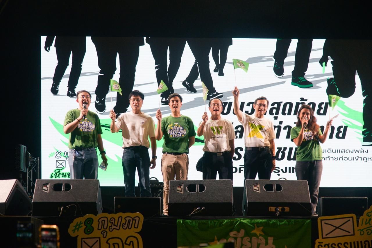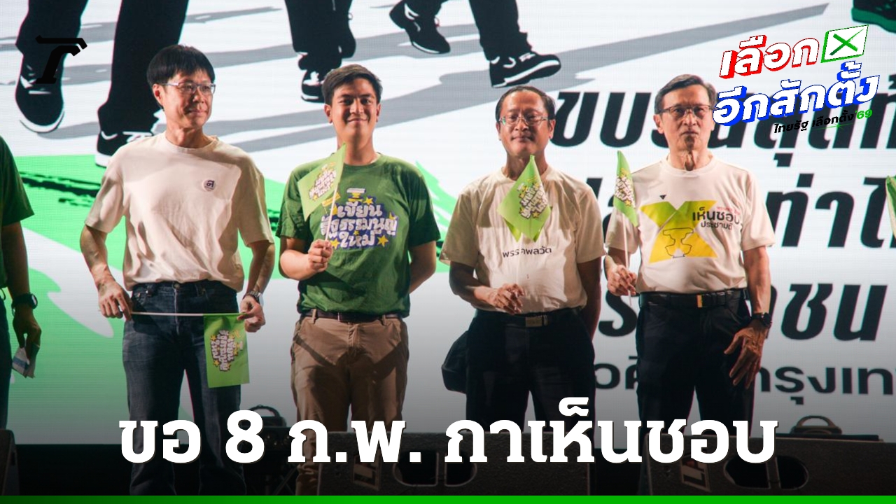 นายพริษฐ์ ยังกล่าวว่า ถ้าเราทุกคนอยากหลุดพ้นจากระบบการเมืองที่ไม่ตอบโจทย์ประชาชนที่เป็นผลผลิตของรัฐธรรมนูญ 60 วันที่ 8 ก.พ.นี้ เราต้องมาร่วมกันชนะและชนะให้ขาด เพื่อให้เสียงและพลังของประชาชนมีมากพอในการไปยันกับผู้มีอำนาจในรัฐสภา และผู้มีอำนาจในองค์กรต่าง ๆ ที่ไม่อยากเห็นการแก้ไขรัฐธรรมนูญชนะให้ขาด เพื่อตอกย้ำให้เห็นชัดว่าประชาชนที่สนับสนุนการแก้ไขรัฐธรรมนูญและการจัดทำรัฐธรรมนูญฉบับใหม่ไม่ได้มีแค่ผู้สนับสนุนพรรคการเมืองใดพรรคการเมืองหนึ่ง และเราต้องร่วมกันชนะเพื่อตอกย้ำว่าการจัดทำรัฐธรรมนูญฉบับใหม่เป็นฉันทามติใหม่ของคนไทยทุกคน ทุกเฉดสีทางการเมือง เพราะฉะนั้น 8 ก.พ. กาเห็นชอบ