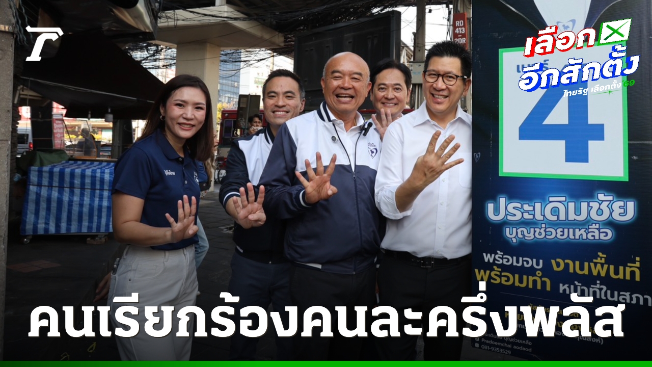 เลือกตั้ง 2569 “เอกนิติ” นำพรรคภูมิใจไทยหาเสียงตลาดเมืองไทยภัทร โค้งสุดท้าย ช่วย “ประเดิมชัย” ผู้สมัคร สส.กทม.เขตห้วยขวาง-วังทองหลาง ชี้ กระแสคนเรียกร้องคนละครึ่งพลัส อยากให้กลับมาทำเฟส 2