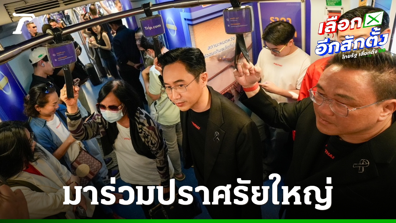 "ยศชนัน" แคนดิเดตนายกฯ เพื่อไทย นั่งรถไฟฟ้ามาร่วมปราศรัยใหญ่เวทีสุดท้ายก่อน "เลือกตั้ง 2569" ขณะที่มวลชนสวมเสื้อสีแดงแห่ให้กำลังใจเพียบ