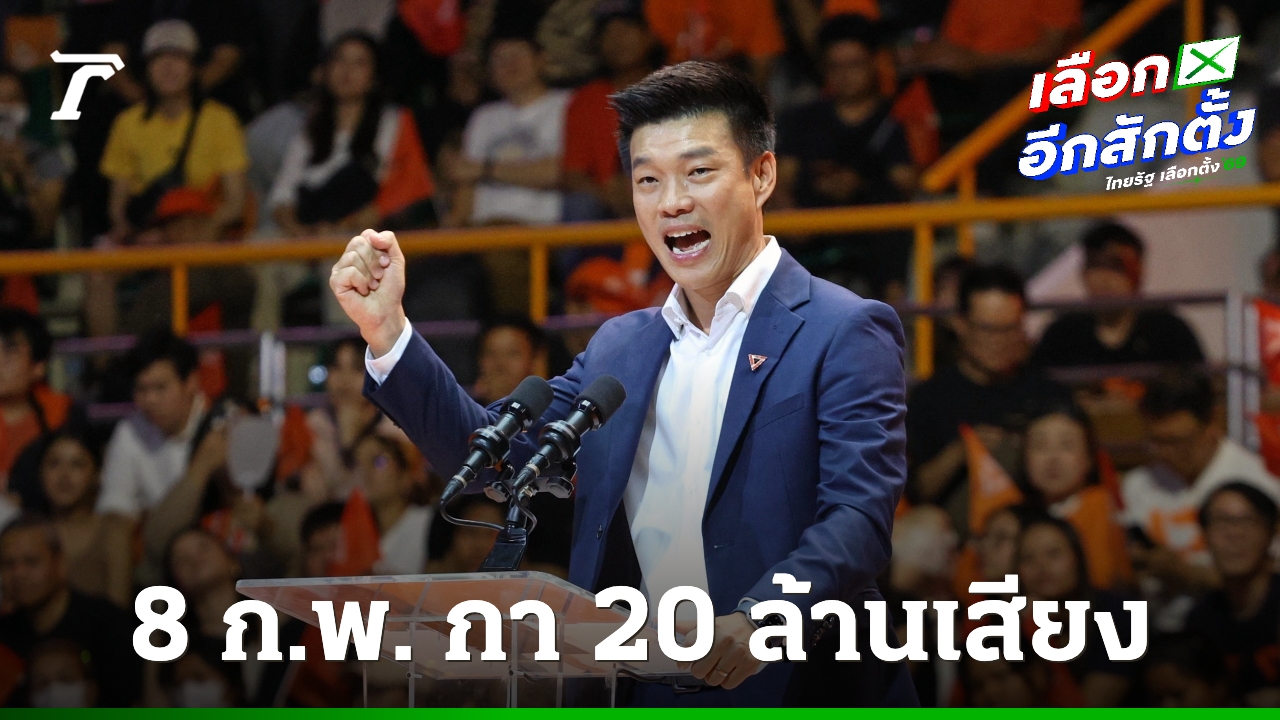 ก่อนที่เราจะมีโอกาสมุ่งหน้าสู่สถานีถัดไป สถานีแรกที่เรามีนัดหมายกันคือ 8 กุมภาพันธ์ใช่หรือไม่ สถานีต่อไปที่พวกเราต้องช่วยกันเปลี่ยน กาเพื่อเปลี่ยน จาก 14 ล้านเสียง เป็น 20 ล้านเสียง กาให้ถล่มทลาย กาให้ถึง 20 ล้านเสียง ให้พวกเขาปฏิเสธอำนาจของประชาชนไม่ได้อีก