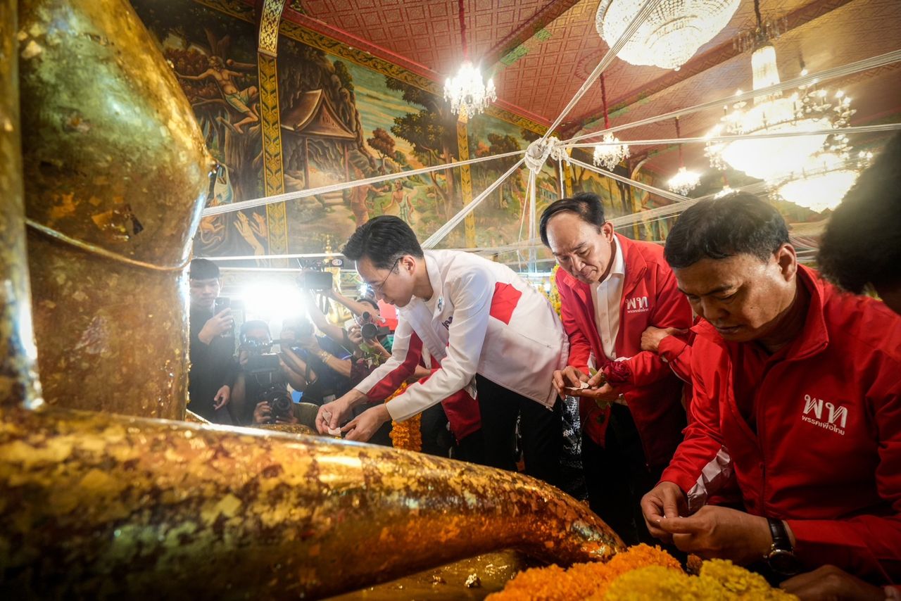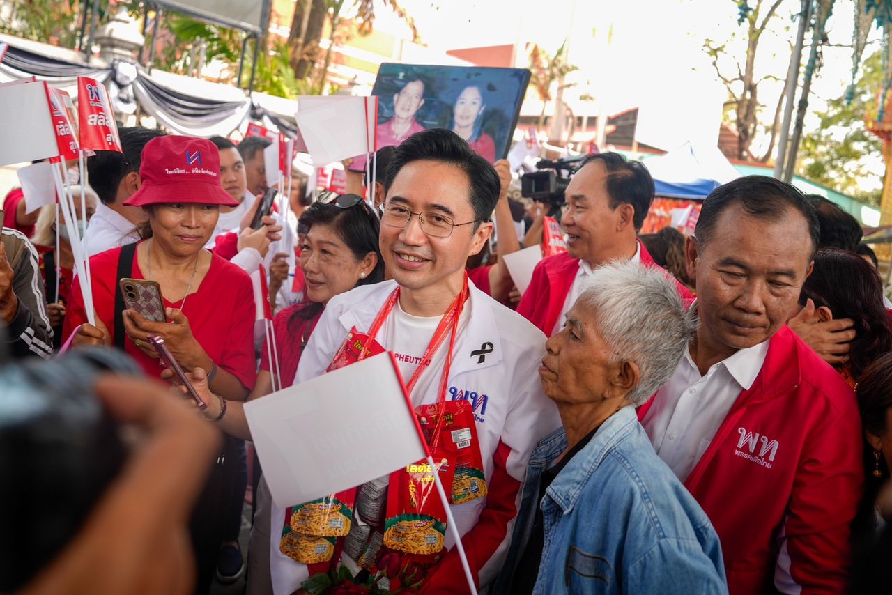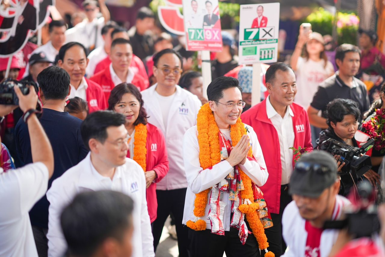 “ยศชนัน” นำผู้สมัคร สส.เพื่อไทย ขึ้นรถแห่หาเสียงปากน้ำ กลุ่ม Gen Z ขับรถประกบข้างตามถ่ายรูป ก่อนสักการะ หลวงพ่อโต