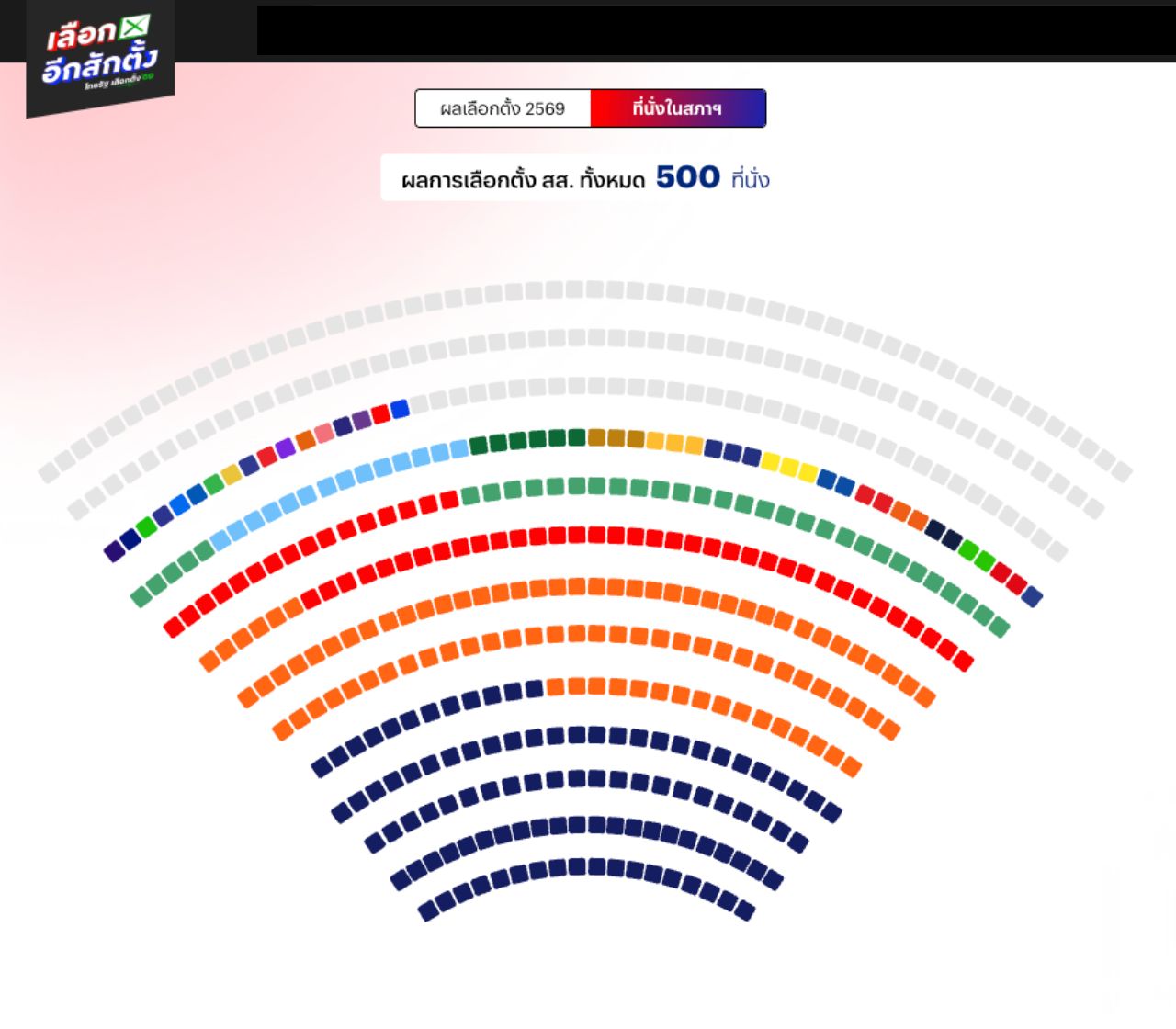 โดยพบว่า ผลคะแนนอย่างไม่เป็นทางการ ภูมิใจไทย ได้ 101 ที่นั่ง, พรรคประชาชน ได้ 92 ที่นั่ง และอันดับ 3 พรรคเพื่อไทย ได้ 50 ที่นั่ง