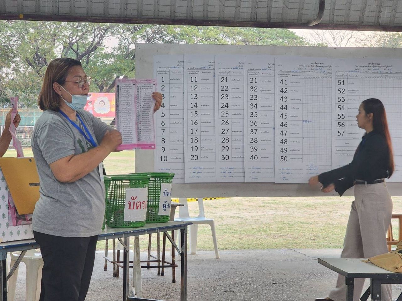 ซึ่งผลการนับคะแนนปรากฏว่าหมายเลขของผู้สมัคร สส.แบบแบ่งเขต ที่มีคะแนนสูสีไล่เลี่ยกัน คือ หมายเลขของผู้สมัคร เบอร์ 5 นายสนอง เทพอักษรณรงค์ ผู้สมัคร จากพรรคภูมิใจไทย (ภท.) มีคะแนนนำ นายธนายุทธ ยืนยั่ง ผู้สมัคร เบอร์ 3 จากพรรคประชาชน และนายพีรภัทร ทองธีรสกุล ผู้สมัคร เบอร์ 2 จากพรรคเพื่อไทย นอกจากนี้ ในส่วนหมายเลขของพรรคการเมือง หรือ แบบบัญชีรายชื่อ พรรคภูมิใจไทย ก็มีคะแนนนำ พรรคประชาชน และพรรคเพื่อไทย ไล่เรียงกันมาแบบติดๆ ส่วนการออกเสียงลงประชามติ คะแนน ไม่เห็นชอบ กับ เห็นชอบ ยังไม่ห่างกันมากนัก