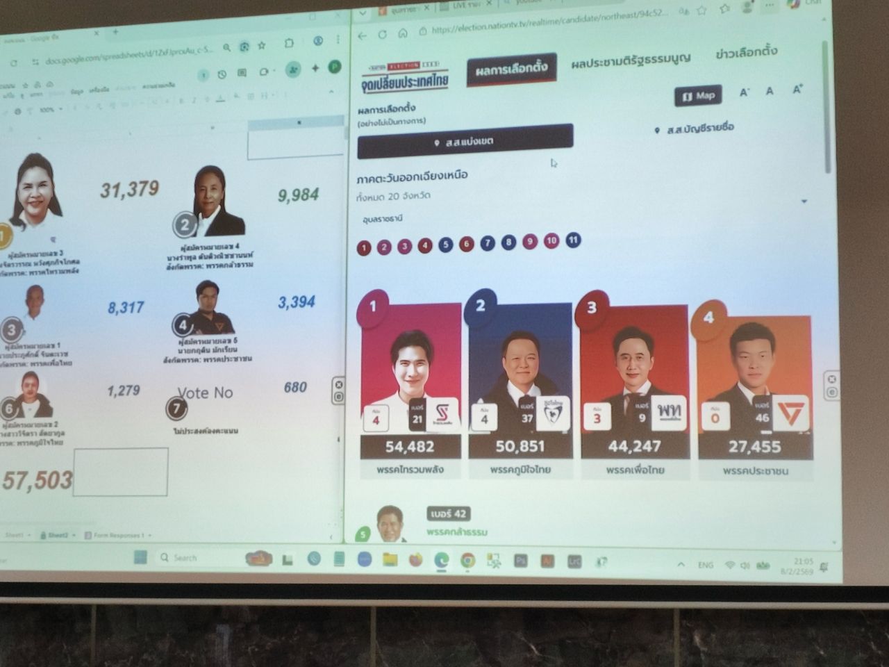 ผู้สื่อข่าวสรุปผลการเลือกตั้ง 2569 ช่วงค่ำวันที่ 8 ก.พ. 2569 ที่ผ่านมา ที่ทำการพรรคไทรวมพลัง หมู่ 7 ต.ไร่น้อย อ.เมืองอุบลราชธานี มาดามกบ นางจิตรวรรณ หวังศุภกิจโกศล ผู้สมัครรับเลือกตั้งเขต 9 อุบลราชธานี ลุ้นผลการนับคะแนนกับบรรดาสมาชิกพรรค ก่อนประกาศชัยชนะหลังนับคะแนนเลือกตั้งอย่างไม่เป็นทางการ เนื่องจากคะแนนนำโด่งกว่า 30,000 คะแนน ทิ้งห่างคู่แข่งที่เป็นเจ้าของพื้นที่เดิมอย่าง นางรำพูล ตันติวณิชชานนท์ จากพรรคกล้าธรรม ที่ได้ 9,000 กว่าคะแนน