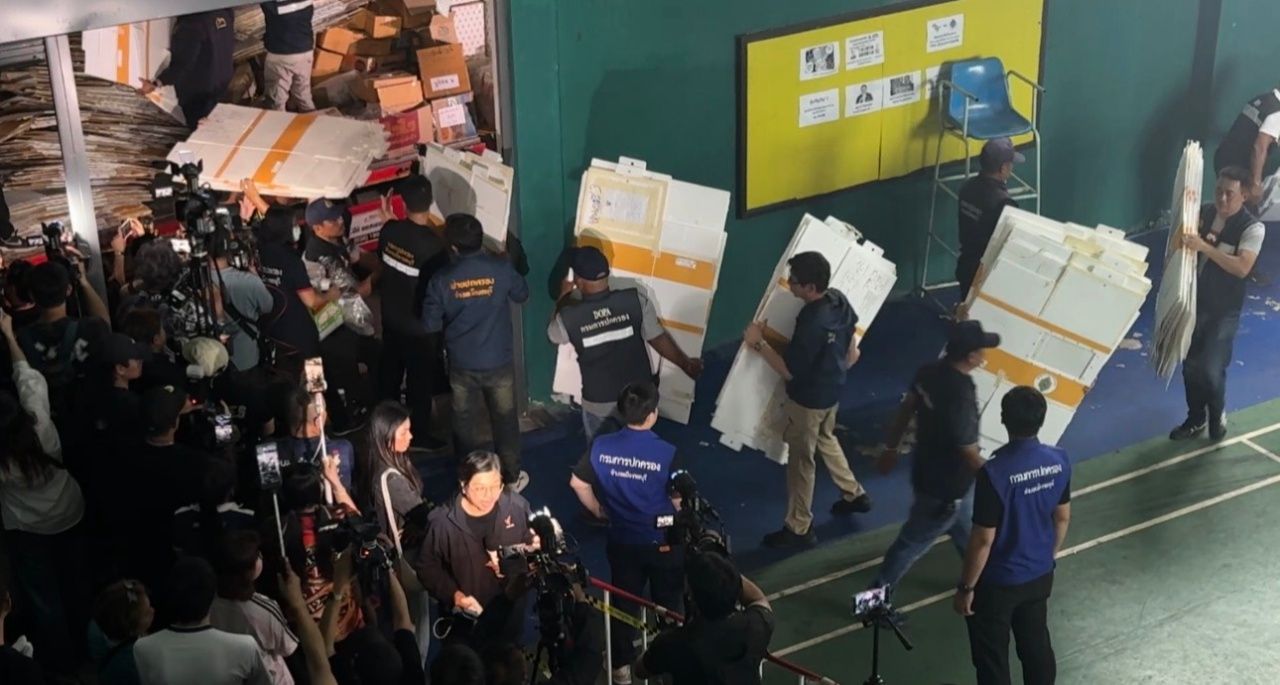 เมื่อเวลา 00.10 น. วันที่ 13 ก.พ. 69 บรรยากาศบริเวณโรงยิม เทศบาลเมืองชลบุรี ซึ่งเป็นที่เก็บหีบเลือกตั้งเขตเลือกตั้งที่ 1 เจ้าหน้าที่ อาสาสมัครรักษาดินแดนได้ดำเนินการขนย้ายหีบบัตรเลือกตั้งขึ้นรถบรรทุก เพื่อเคลื่อนย้ายไปเก็บรักษาไว้ที่ศาลาประชาคมอำเภอเมืองชลบุรี
