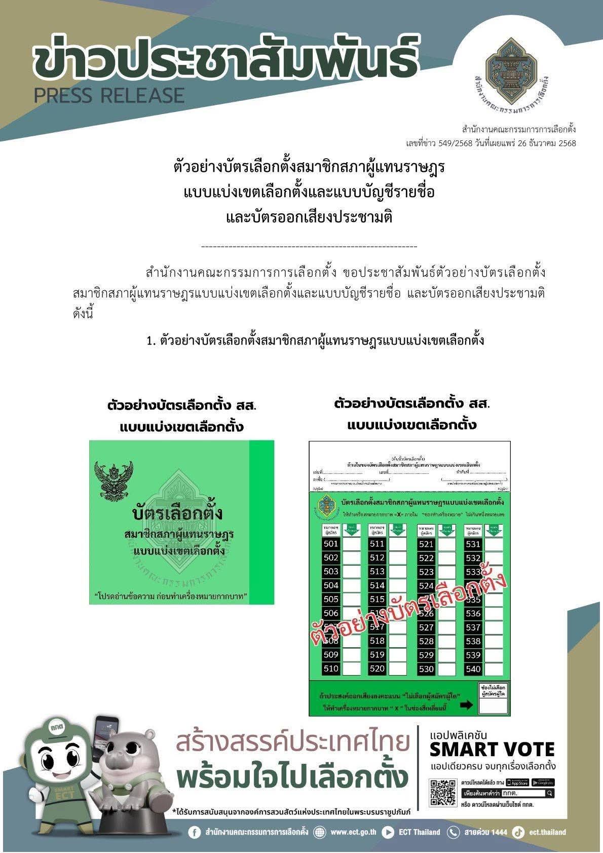 วันที่ 13 กุมภาพันธ์ 2569 ผู้สื่อข่าวรายงานว่า ภายหลังในโลกออนไลน์พากันแชร์ภาพต้นขั้วบัตรเลือกตั้งที่มีบัตรเลขที่ และเล่มเลขที่ รวมถึงยังมีบาร์โค้ดอยู่ที่ท้ายบัตรเลือกตั้ง สส.บัญชีรายชื่อ ที่อาจส่อไม่เป็นทางลับ และอาจขัดรัฐธรรมนูญ พ.ศ. 2560 มาตรา 85 กำหนดไว้ว่า ให้การเลือกตั้ง สส.เป็น “การออกเสียงลงคะแนนโดยตรงและลับ” พ.ร.ป.ว่าด้วยการเลือกตั้ง ส.ส. พ.ศ. 2561 มาตรา 96 กำหนดว่า “ห้ามมิให้ผู้ใดจงใจทำเครื่องหมายเพื่อเป็นที่สังเกตโดยวิธีใดไว้ที่บัตรเลือกตั้ง” หรือไม่