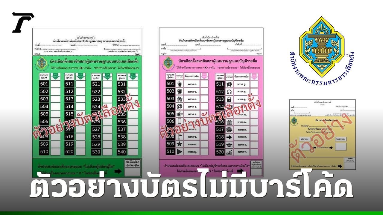 ย้อนดูบัตรตัวอย่างเลือกตั้ง ของ กกต. ทั้ง 3 แบบ ทั้งบัตรสีเขียวเลือกสส.เขต บัตรสีชมพู เลือกสส.บัญชีรายชื่อ และ บัตรสีเหลือง ออกเสียงประชามติ แก้รัฐธรรมนูญ ไม่มีการแสดงบาร์โค้ด