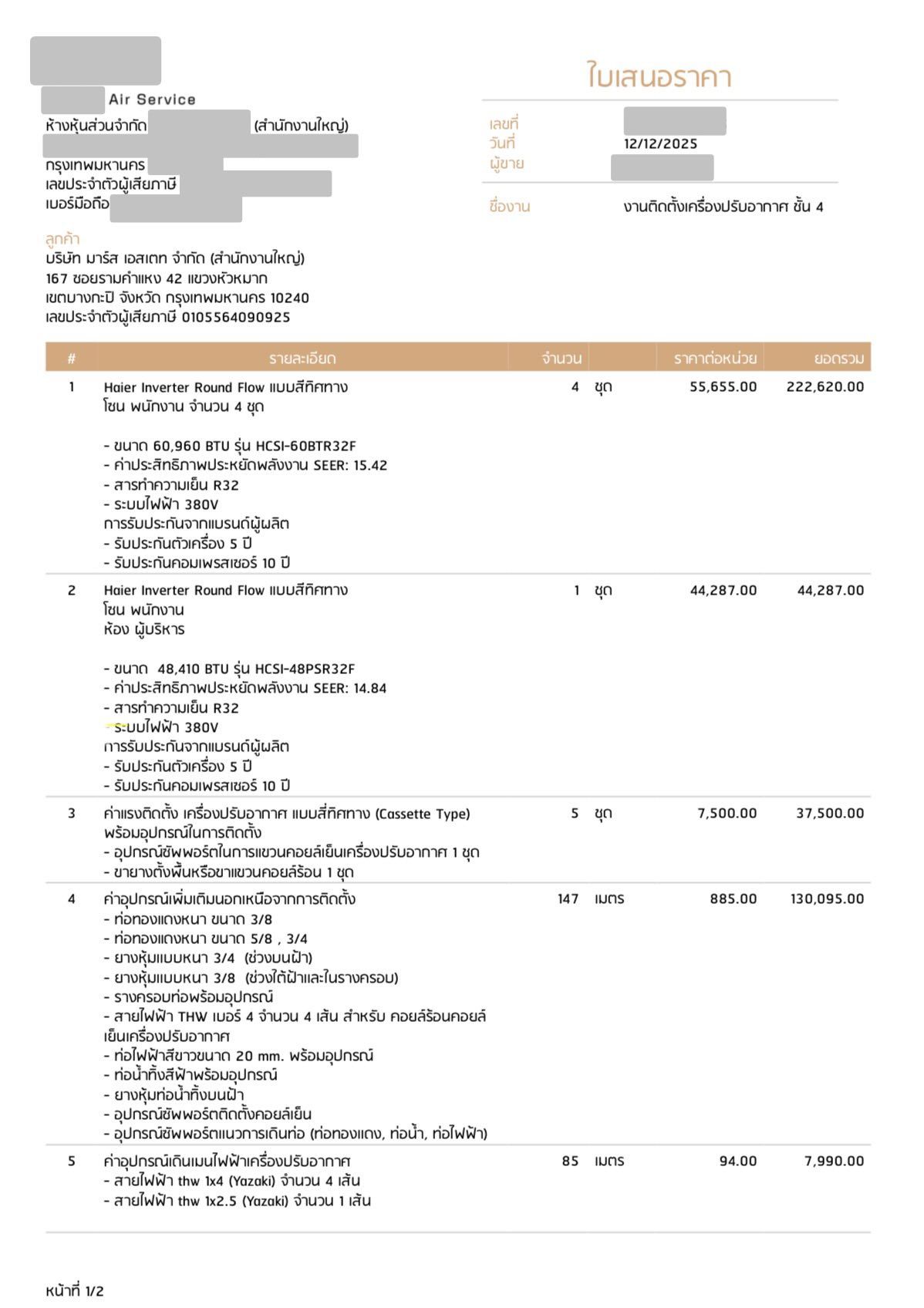 “เพชร กรุณพล” แจงอีกครั้ง ยืนยันวันที่พาสื่อทัวร์ “สเปกเตอร์ ซี” มีการเปลี่ยนแอร์จริง โชว์เอกสารติดตั้งแอร์ใหม่ ธ.ค. 68 กว่า 5.1 แสนบาท “บริษัทภรรยาธนาธร” เจ้าของตึกเป็นลูกค้า