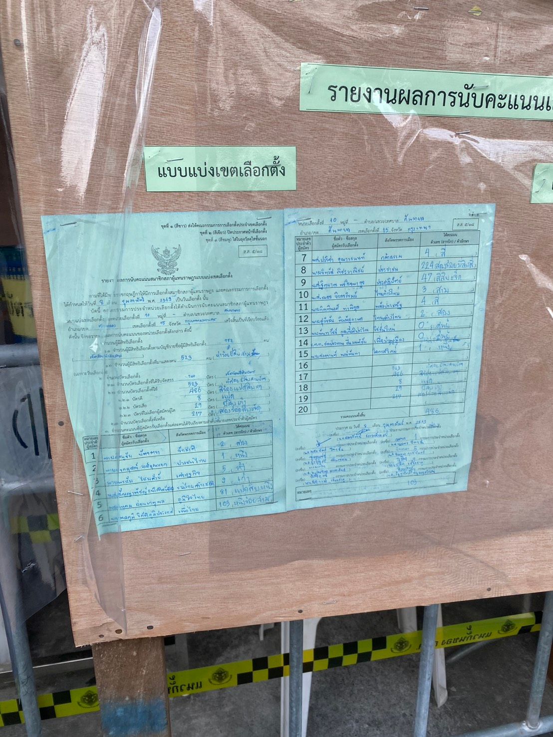 กระทั่งเวลา 11.40 น. ทาง กปน. นับคะแนนเสร็จสิ้นแล้วทั้ง 3 บัตร โดยในหน่วยที่ 10 เขตเลือกตั้งที่ 15 กทม. ปรากฏผลคะแนนมากที่สุด ดังนี้