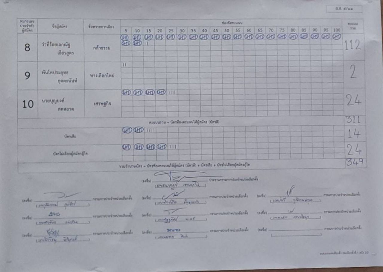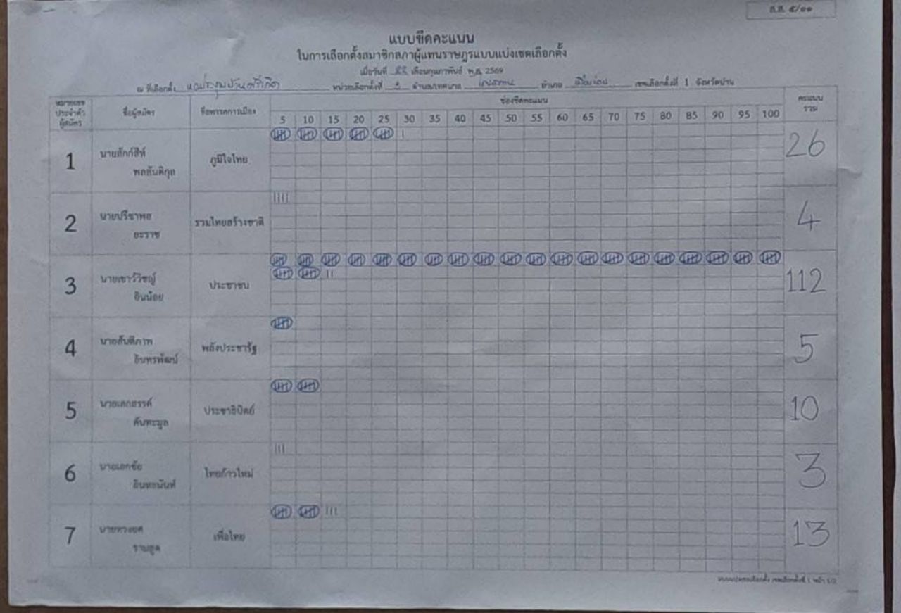 ผลการนับคะแนนเลือกตั้งใหม่ สส.เขต จ.น่าน เขต 1 หน่วย 3 อย่างไม่เป็นทางการ “เชาว์วิชญ์ พรรคประชาชน - เอกณัฐ พรรคกล้าธรรม” ได้คะแนนสูงสุดเท่ากัน 112 คะแนน