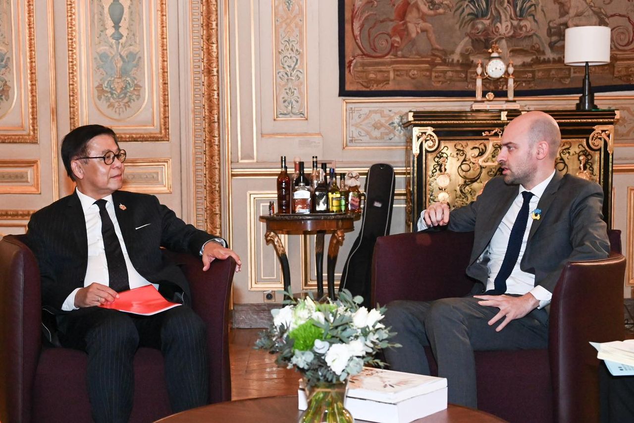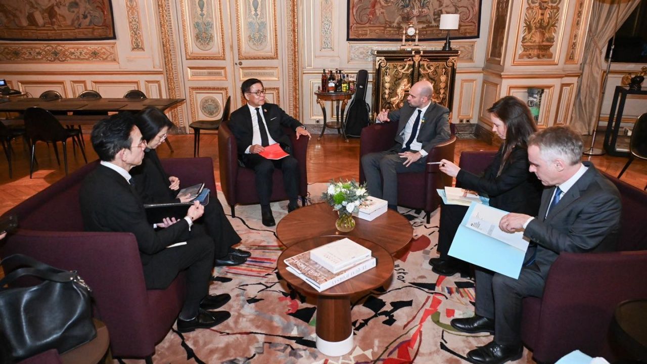 โดยการหารือครอบคลุม ตลอดจนการแลกเปลี่ยนในระดับประชาชน และวัฒนธรรม ทั้งสองฝ่ายยังได้หารือเกี่ยวกับความท้าทายด้านภูมิรัฐศาสตร์ และประเด็นความมั่นคงในภูมิภาคเอเชียตะวันออกเฉียงใต้ ซึ่งเป็นประเด็นที่ทั้งสองฝ่ายให้ความสำคัญ โดยรัฐมนตรีฯ ชื่นชมบทบาทที่เป็นกลางและสร้างสรรค์ของฝรั่งเศสในการเสริมสร้างสันติภาพและเสถียรภาพโดยเฉพาะในบริบทของสถานการณ์ชายแดนไทย - กัมพูชา และให้ข้อมูลเกี่ยวกับสถานการณ์ในเมียนมา และความพยายามต่อต้านการหลอกลวงออนไลน์ในภูมิภาค
