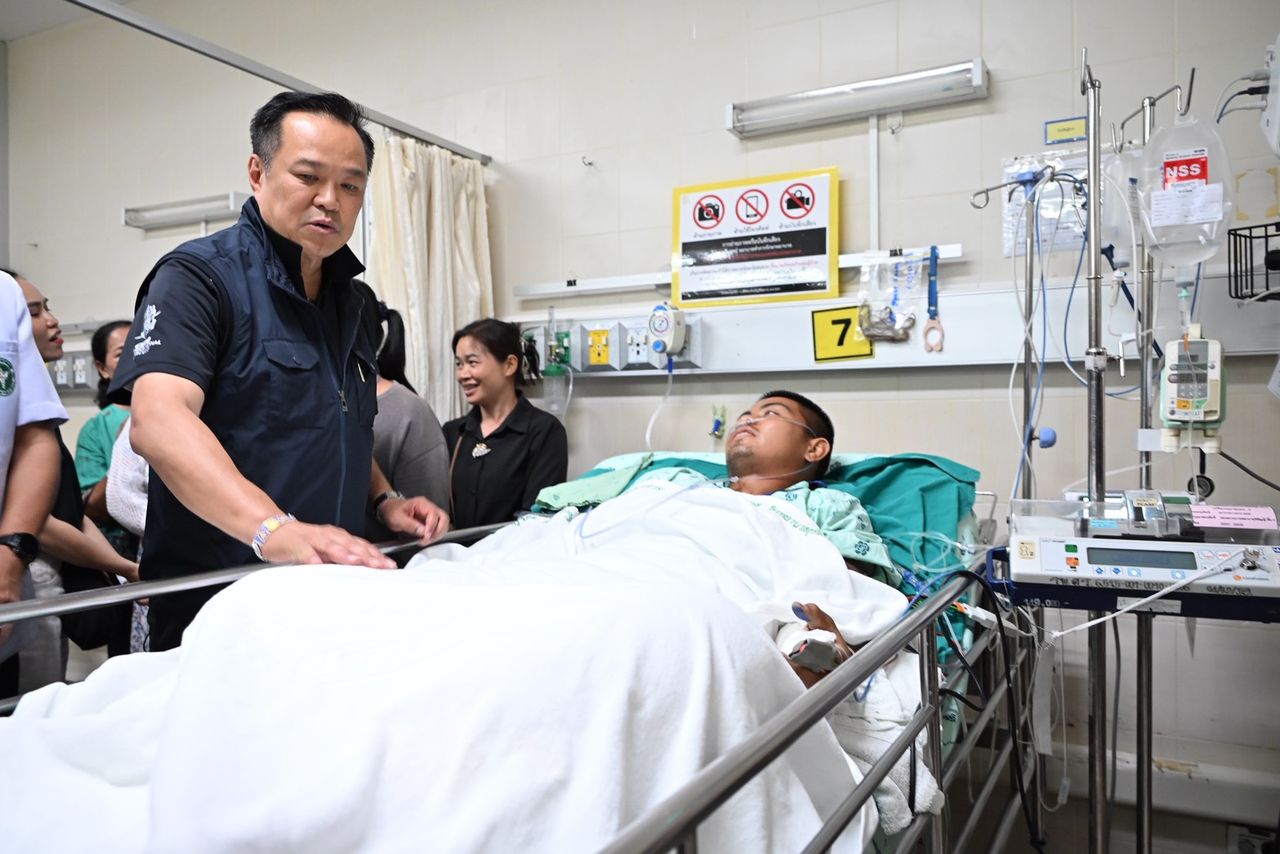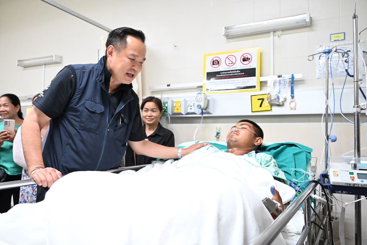 วันที่ 1 มี.ค. 2569 เมื่อเวลา 16.55 น. ที่โรงพยาบาลสุรินทร์ จ.สุรินทร์ นายอนุทิน ชาญวีรกูล นายกฯและรมว.มหาดไทย พร้อมด้วย นายโสภณ ซารัมย์ รองนายกฯ พล.ท.อดุลย์ บุญธรรมเจริญ รมช.กลาโหม เข้าเยี่ยมให้กำลังใจ พลทหารเดชศักดิ์ ตรีคำ ซึ่งได้รับบาดเจ็บจากการเหยียบทุ่นระเบิดสังหารบุคคล ขณะปฏิบัติหน้าที่บริเวณเขตควบคุมของหน่วยฐานปฏิบัติการเอราวัณ อ.กาบเชิง จังหวัดสุรินทร์ เมื่อวันที่ 27 ก.พ.ที่ผ่านมา ส่งผลให้ขาขวาขาดจากแรงระเบิด และขาซ้ายมีแผลเปิดขนาดใหญ่ รวมทั้งกระดูกขาซ้ายแตกหักบางส่วน ปัจจุบันอยู่ระหว่างการรักษาตัวภายใต้การดูแลของทีมแพทย์อย่างใกล้ชิด โดยมีผวจ.สุรินทร์ หัวหน้าส่วนราชการ และประชาชนรอต้อนรับ โดยนายกฯ ได้เข้าไปทักทายพูดคุยกับประชาชน ก่อนที่จะเข้าไปเยี่ยมพลทหารเดชศักดิ์