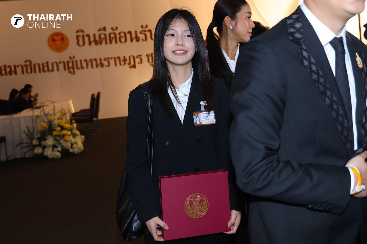 “พลอย ณัฐธิดา” หลานสาว “เนวิน” สส. อายุน้อยสุด รายงานตัวสภาฯ บอกไม่กังวลถูกจับตา รับเตรียมตัวหนัก พร้อมทำงานพัฒนาพื้นที่ ด้าน “โสภณ ซารัมย์” เขิน ถูกสื่อเรียก “ท่านประธาน”