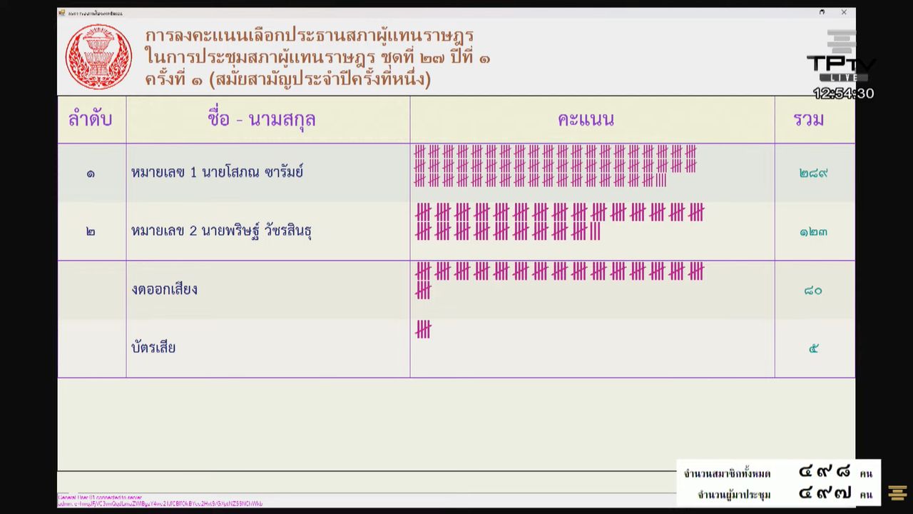 ผลโหวตประธานสภาฯ 2569