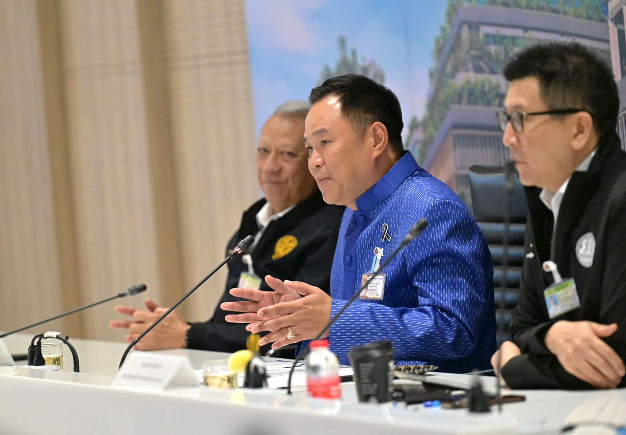 เมื่อเวลา 18.13 น. วันที่ 19 มีนาคม 2569 ที่ห้องประชุม CB 406 ชั้น 4 อาคารรัฐสภา นายอนุทิน ชาญวีรกูล นายกรัฐมนตรีและรัฐมนตรีว่าการกระทรวงมหาดไทย นายพิพัฒน์ รัชกิจประการ รองนายกรัฐมนตรีและรัฐมนตรีว่าการกระทรวงคมนาคม นายเอกนิติ นิติทัณฑ์ประภาศ รองนายกรัฐมนตรีและรัฐมนตรีว่าการกระทรวงการคลัง นายสีหศักดิ์ พวงเกตุแก้ว รัฐมนตรีว่าการกระทรวงการต่างประเทศ นายอรรถพล ฤกษ์พิบูลย์ รัฐมนตรีว่าการกระทรวงพลังงาน และนายดนุชา พิชยนันท์ เลขาธิการสภาพัฒนาการเศรษฐกิจและสังคมแห่งชาติ ร่วมกันแถลงภายหลังการประชุมศูนย์บริหารและติดตามสถานการณ์การสู้รบในภูมิภาคตะวันออกกลาง (ศบก.)