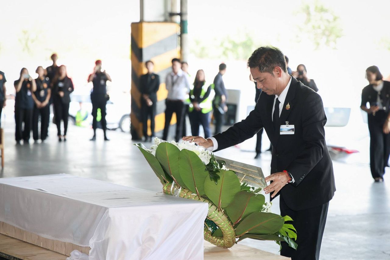 เมื่อเวลา 13.30 น. วันที่ 27 มีนาคม 2569 นายพิเชษฐ์ ทองพันธ์ รองปลัดกระทรวงแรงงาน พร้อมด้วย นายบัญชา ยืนยงจงเจริญ รองอธิบดีกรมการกงสุล นายศักดินาถ สนธิศักดิ์โยธิน ผู้ช่วยปลัดกระทรวงแรงงาน และ Mrs. Dvora Dorsman Yarkoni รองหัวหน้าสำนักงานสถานเอกอัครราชทูตอิสราเอลประจำประเทศไทย ร่วมพิธีรับร่างและไว้อาลัย นายชัยวัฒน์ แววนิล แรงงานไทยที่เสียชีวิตจากเหตุการณ์สู้รบในภูมิภาคตะวันออกกลาง เมื่อวันที่ 18 มีนาคม 2569 ณ ท่าอากาศยานสุวรรณภูมิ ก่อนจะส่งกลับไปประกอบพิธีทางศาสนาที่จังหวัดชัยภูมิ ต่อไป