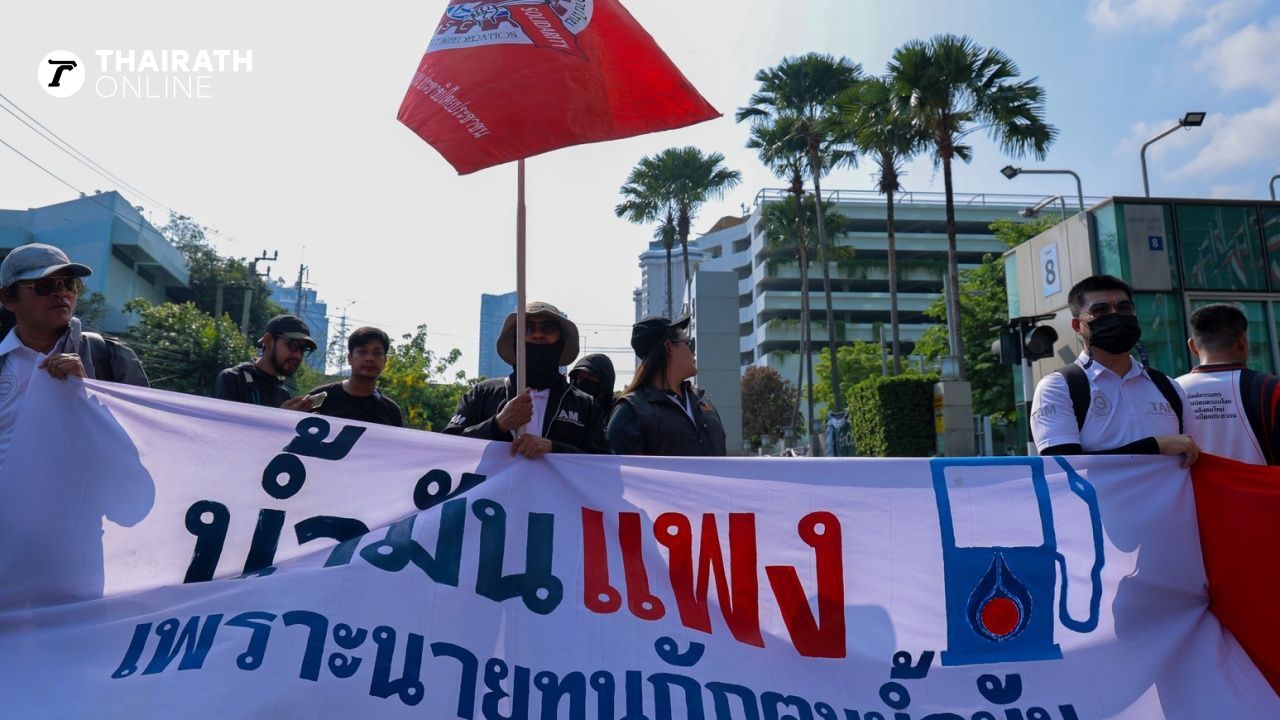 เครือข่ายแรงงานบุกกระทรวงพลังงาน โวยค่าการกลั่นพุ่ง จี้รัฐตรึงราคาน้ำมัน ดึง “ปตท.” กลับเป็นของรัฐ 100%