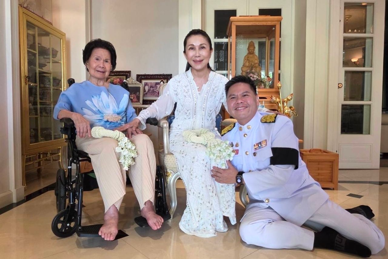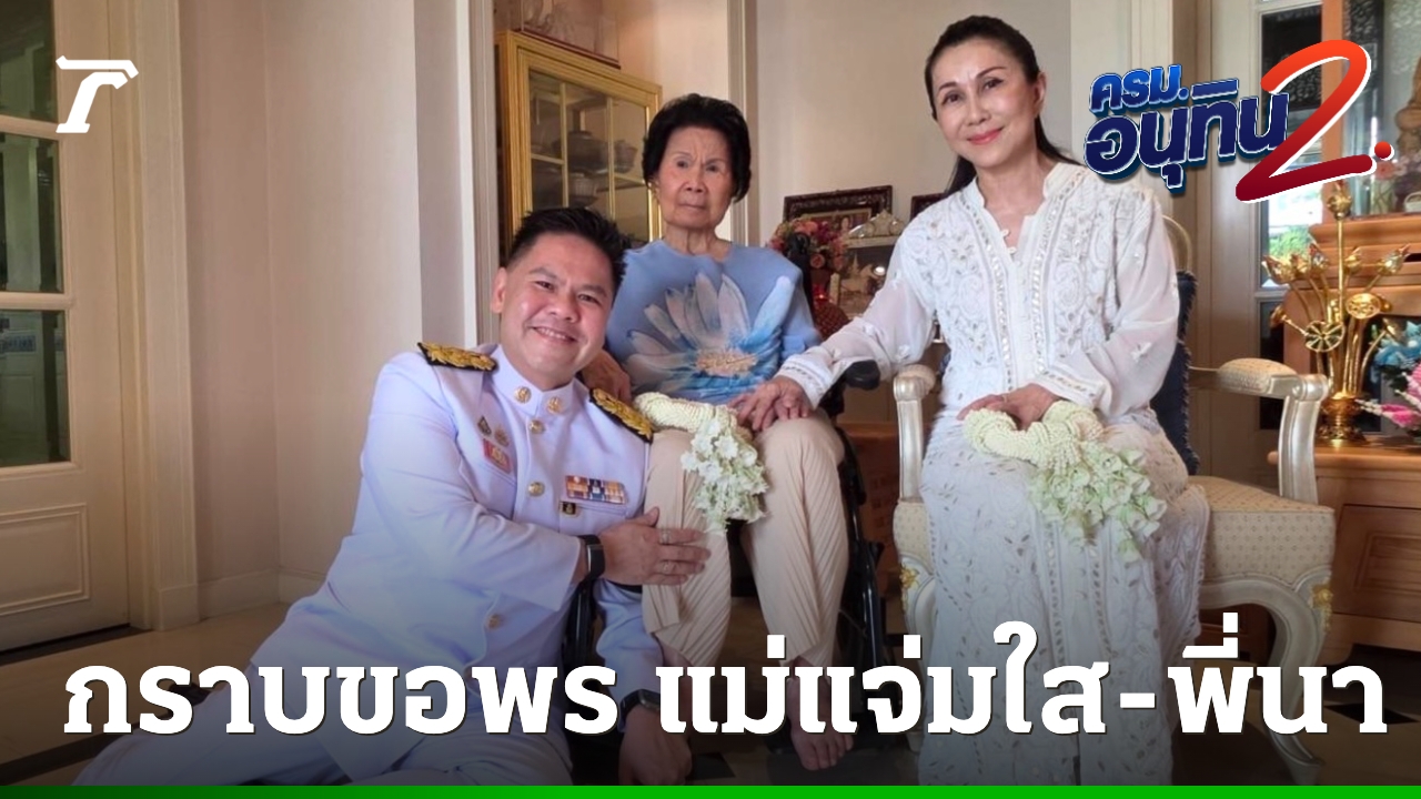 โดยนายวราวุธนำพวงมาลัยกราบคุณหญิงแจ่มใส พร้อมกล่าวว่า “ลูกชายมาขอพรแม่ครับ” ซึ่งคุณหญิงแจ่มใส ได้กล่าวอวยพรว่า “คิดอะไรขอให้ได้ทุกสิ่งทุกอย่างที่ต้องการ”