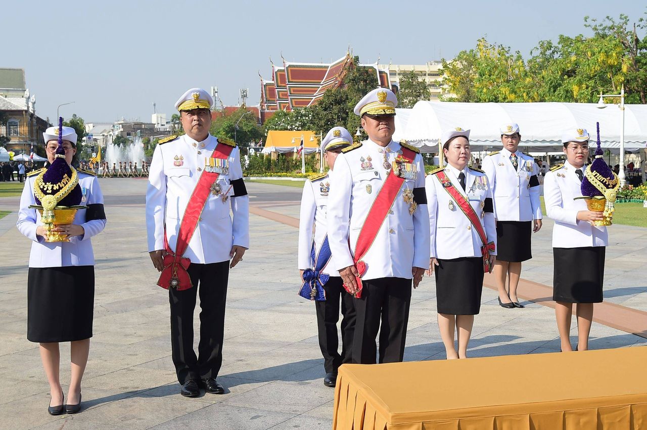 ทั้งนี้ เมื่อนายกรัฐมนตรีเดินทางถึง ได้ถวายความเคารพก่อนวางพานพุ่มดอกไม้ถวายราชสักการะปฐมบรมราชานุสรณ์ พระบาทสมเด็จพระพุทธยอดฟ้าจุฬาโลกมหาราช จำนวน 2 พาน ในนาม “นายกรัฐมนตรีและคณะรัฐมนตรี” เป็นอันเสร็จพิธี โดยมี นายสุชาติ ชมกลิ่น รองนายกรัฐมนตรีและรัฐมนตรีว่าการกระทรวงทรัพยากรธรรมชาติและสิ่งแวดล้อม หัวหน้าผลัดเวรเฝ้าฯ ผลัดที่ 6 ร่วมพิธี