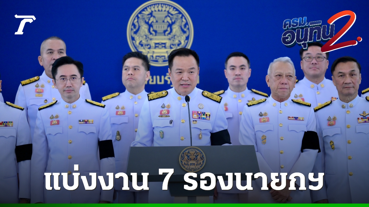 นายกฯ อนุทิน ลงนามคำสั่งแบ่งงาน 7 รองนายกฯ - รมต.ประจำสำนักนายกฯ “พิพัฒน์” คุม คมนาคม - ดีอี - อีอีซี ส่วน “เอกนิติ” ดู คลัง - พลังงาน ด้าน “ยศชนัน” คุมทุกกระทรวงโควตาเพื่อไทย