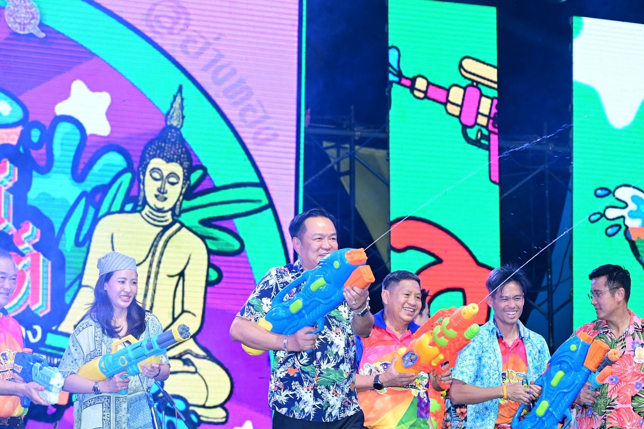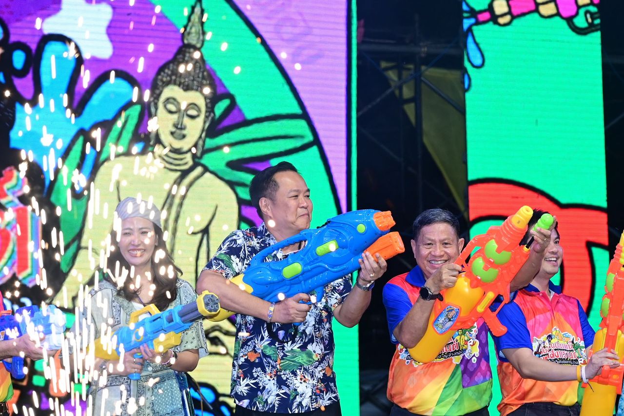“อนุทิน” พา ภริยา นำคณะยิงปืนฉีดน้ำเปิดงานสงกรานต์ถนนข้าวสุกอ่างทอง “สมศักดิ์ ปริศนานันทกุล” แต่งกลอนพูดแล้วทำบวกพลัส บอกทุกจังหวัดมีกิจกรรมดึงนักท่องเที่ยว ขอคนไทยเล่นน้ำมีความสุขอย่างเต็มที่ ไม่เลยเถิด