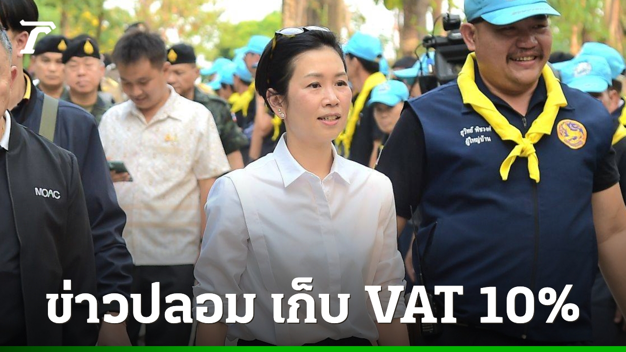 เมื่อเวลา 08.27 น. วันที่ 21 เมษายน 2569 น.ส.รัชดา ธนาดิเรก โฆษกประจำสำนักนายกรัฐมนตรี กล่าวถึงกรณีมีการส่งข้อความในสื่อโซเชียลมีเดียว่าจะมีการขึ้นภาษี VAT จาก 7% เป็น 10% ว่า เป็นข่าวปลอม รัฐบาลมีแต่จะพิจารณามาตรการบรรเทาภาระค่าใช้จ่ายประชาชนเท่านั้น