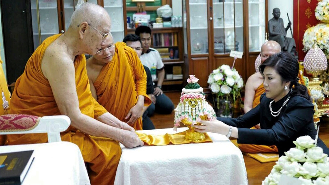 จากนั้นน.ส.ยิ่งลักษณ์ กล่าวคำถวายธูปเทียนแพ พานดอกไม้ ผ้าไตร และเครื่องไทยธรรมแก่สมเด็จพระสังฆราชฯ และกล่าวแทนในนาม 2 อดีตนายกฯ คือ นายทักษิณ ชินวัตร และนายสมชาย วงศ์สวัสดิ์