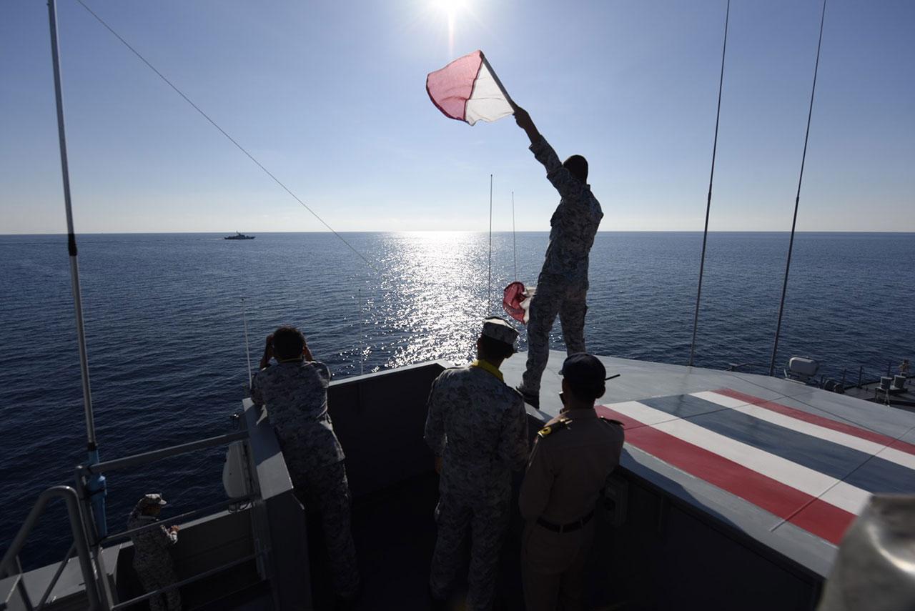 การฝึกร่วมระหว่างหมู่เรือทั้ง 2 ประเทศ ในระหว่างทำการลาดตระเวนร่วม เพื่อให้เกิดประโยชน์สูงสุดของทั้งสองฝ่าย และสร้างความคุ้นเคยในการปฏิบัติต่อกันในอนาคต การฝึกที่สำคัญ เช่น การแลกเปลี่ยนเป้าในทะเล การแปรกระบวนเรือ การติดต่อการสื่อสารระหว่างเรือของทั้งสองฝ่ายทางทัศนสัญญาณ (ในเวลากลางวันและกลางคืน) การค้นหาและช่วยเหลือผู้ประสบภัยทางทะเล เป็นต้น ตลอดช่วงเวลา 2 วัน (วันที่ 20–21 เมษายน 2560) ที่ลาดตระเวนร่วมกัน