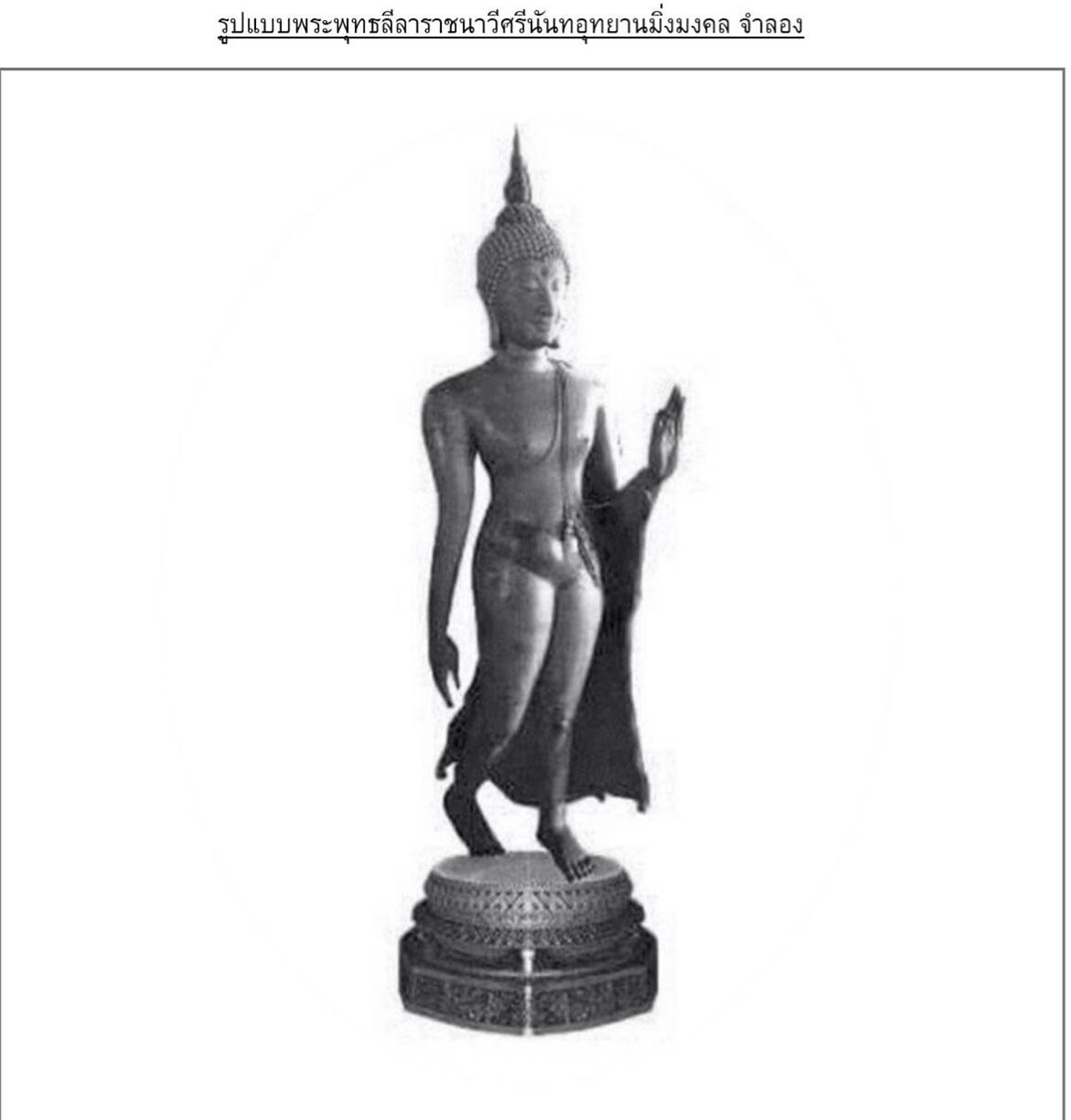 สำหรับพระพุทธลีลาราชนาวีศรีนันทอุทยานมิ่งมงคล จัดทำขึ้นเพื่อเป็นสิริมงคลและเป็นที่ยึดเหนี่ยวจิตใจของข้าราชการและกำลังพลของกองทัพเรือ โดยได้จัดสร้างพระพุทธลีลาราชนาวีฯ จำลองให้หน่วยต่างๆ ในกองทัพเรือไว้ประดิษฐาน และเหรียญพระพุทธลีลาราชนาวีฯ ให้กับกำลังพลในกองทัพเรือทุกนาย