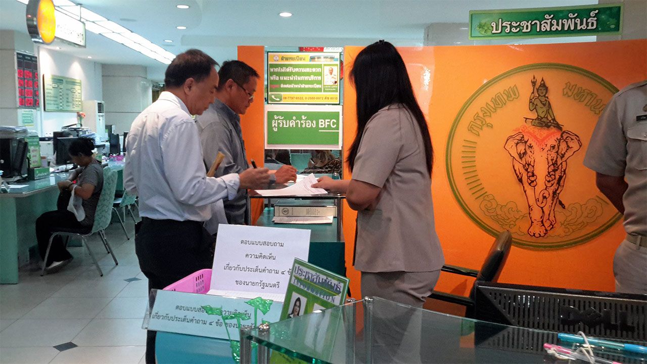 สำหรับบรรยากาศที่สำนักงานเขตบางซื่อ เจ้าหน้าที่ได้จัดเตรียมเอกสารคำถาม และคอยอำนวยความสะดวกนำแบบสอบถามให้ประชาชนที่สนใจทำแบบสอบถาม แต่บรรยากาศค่อนข้างเงียบเหงา เนื่องจากประชาชนส่วนใหญ่ไม่ทราบว่าวันนี้เป็นวันแรกที่เปิดให้ตอบคำถามของนายกฯ ส่วนบรรยากาศที่สำนักงานเขตพญาไท มีประชาชนเข้ามาตอบแบบสอบถามค่อนข้างบางตา จากการสอบถามประชาชนส่วนใหญ่ต่างบอกว่าอยากให้มีการเลือกตั้ง เพื่อช่วยให้เศรษฐกิจดีขึ้น