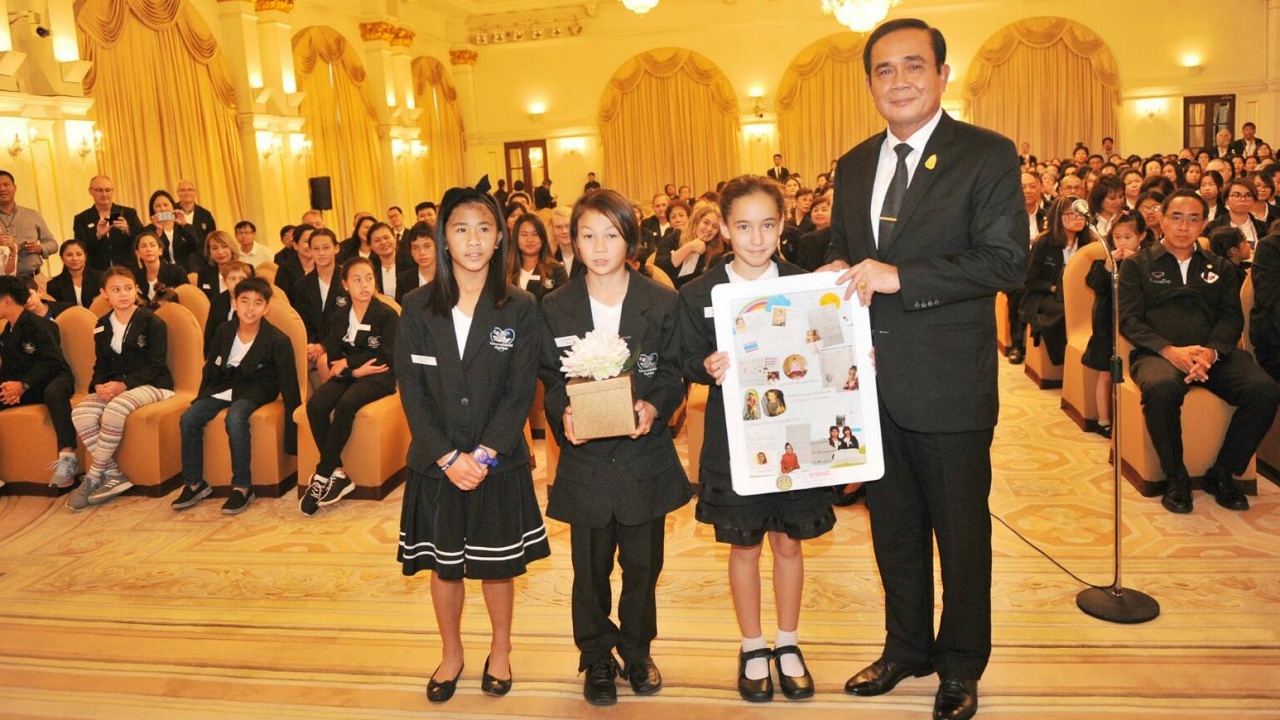 พล.อ.ประยุทธ์ กล่าวว่า ประเทศไทยต้องพัฒนา 2 อย่าง คือ การพัฒนาโดยคำนึงถึงส่ิงแวดล้อมเพื่อรักษาคนรุ่นหลัง จากที่ผ่านมามีการบุกรุกป่าในช่วงประชาธิปไตยเต็มใบทั้งส้ิน และขอขอบคุณในความตั้งใจจริง ขอฝากทุกคนเจริญเติบโตอย่างมีคุณภาพ พัฒนาความก้าวหน้าให้กับระเทศ ทั้งแผ่นดินเกิดและแผ่นดินที่อยู่อาศัย จากนั้นนายกฯ ได้มอบกระเป๋าผ้าขาวม้า ซึ่งเป็นผลิตภัณฑ์หนึ่งตำบลหนึ่งผลิตภัณฑ์ (โอทอป) ให้เป็นของที่ระลึกแก่คณะเยาวชนไทยและผู้ปกครองสหรัฐอเมริกาและเยาวชนไทยในออสเตรเลีย โดยตัวแทนเยาวชนไทยในออสเตรเลียได้กล่าวกับนายกฯ ว่า ครั้งนี้ถือเป็นครั้งที่ 2 ที่เดินทางมาประเทศไทย ครั้งแรกที่มาได้มีโอกาสแสดงโขนเป็นหนุมาน รู้สึกชื่นชอบและประทับใจมาก เมื่อมีโอกาสมาไทยครั้งนี้ซึ่งได้มาพบกับนายกฯ จึงรู้ว่าลุงตู่ใจดีมาก ไม่เหมือนกับในโทรทัศน์ จากนั้นตัวแทนเยาวชนไทยในออสเตรเลียได้ร่วมร้องเพลง "ฉันเป็นคนไทย" ให้นายกฯ ฟัง ก่อนร่วมถ่ายภาพหมู่เป็นที่ระลึก