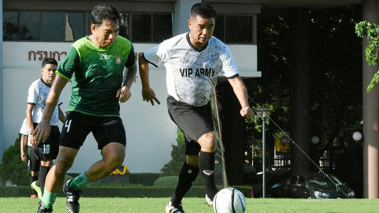 “บิ๊กเจี๊ยบ” นำทีมวีไอพี ทบ.ฟาดแข้งกระชับมิตร ทีม นศ.4 ส.“พีระศักดิ์-เอกชัย-บก.ลายจุด-วีระ” ร่วมลงเตะเชื่อมปรองดอง